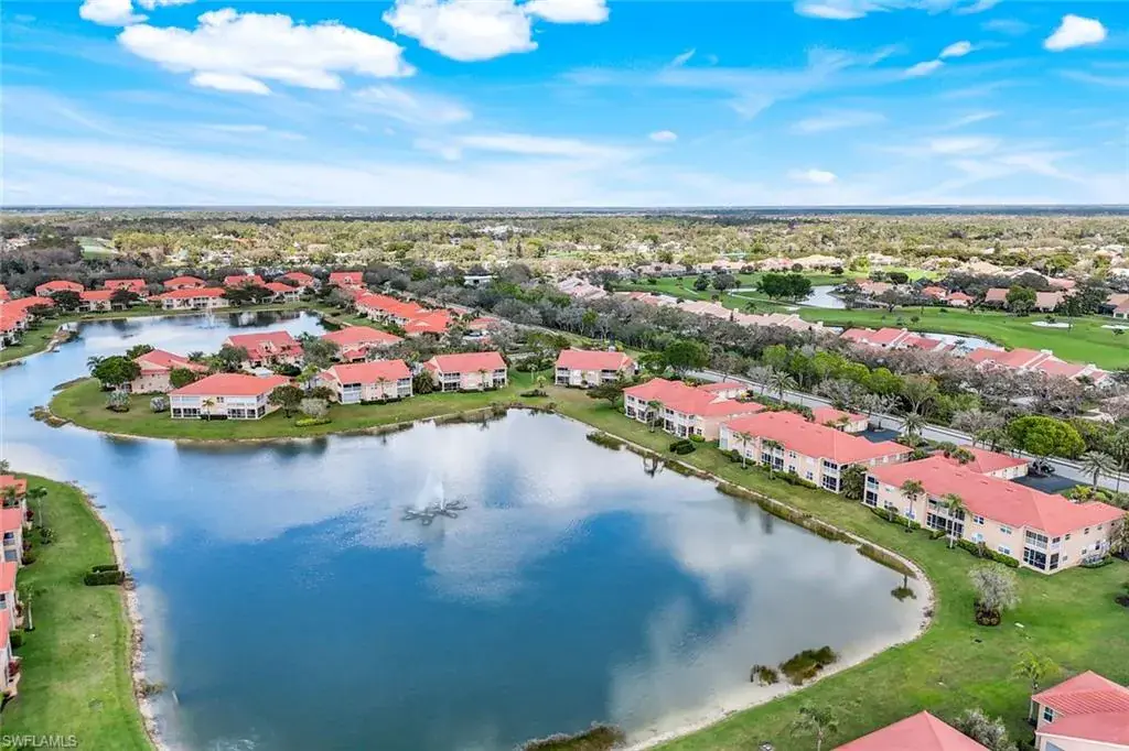OUTSTANDING PRICE REDUCTION !!!!!! SELLER WANTS AN OFFER!!! With huge lake views, west facing and a coveted garage, this 2 bedroom 2 bath condo in charming Huntington Lakes is an offering not to be missed. Tile throughout on the diagonal, this turnkey furnished home is cozy and spotless. This unit was originally outfitted with some upgrades, the developer provided in their models. Customized wall and mirror detail in the living and dining area, showcase the uniqueness of this home. Kitchen features a newer dishwasher, microwave and the washer and dryer have also been recently installed. Security provided with hurricane protection at every opening. Centrally located, in North Naples with easy access to I-75, the location cannot be beat. What more could you want – schedule your showing today!!!