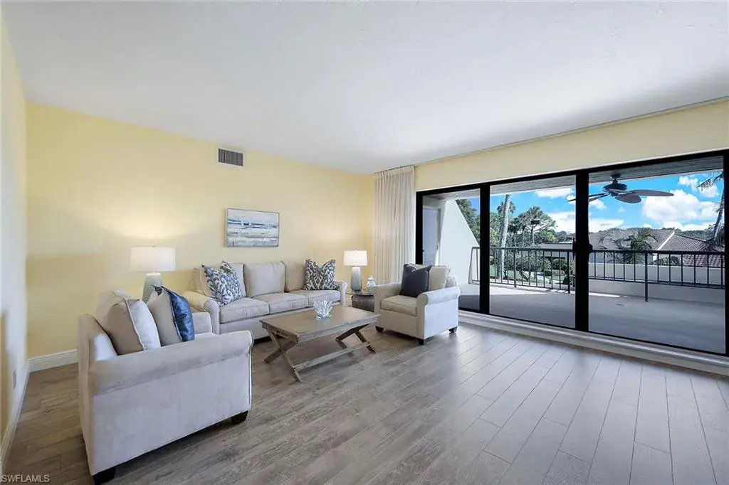 Introducing an exceptional three-bedroom end unit in Hyde Park. Ideally located across from Pelican Bay Commons, tennis courts, and the Pelican Bay Beach Tram, this residence invites relaxation with three open terraces boasting serene views of picturesque park-like landscapes adorned with lush greenery, captivating pool club, and tranquil lake. This rare and coveted floor plan showcases three remarkably spacious bedrooms. The stunning kitchen features granite countertops, tile backsplash, soft-close drawers, and tray ceilings with crown molding. The primary bedroom includes two expansive walk-in closets and a primary bathroom. Additional features include a sizable storage space, laundry room, tankless water heater and parking space under the building. Hyde Park residents enjoy their own lakeside clubhouse, community pool and spa, fitness center, tennis courts, and coveted pickleball court. Additionally, Pelican Bay offers an unparalleled lifestyle with three miles of pristine private beach access, beachfront restaurants, a community center featuring a fitness center and spa, two tennis facilities, kayaking, and sailing opportunities. Embrace the opulence that Pelican Bay offers.