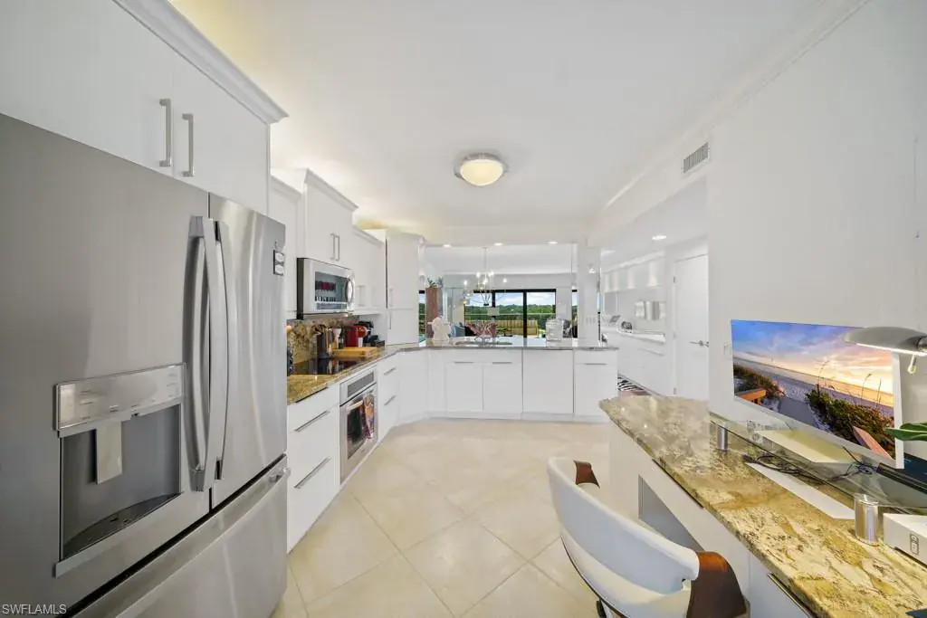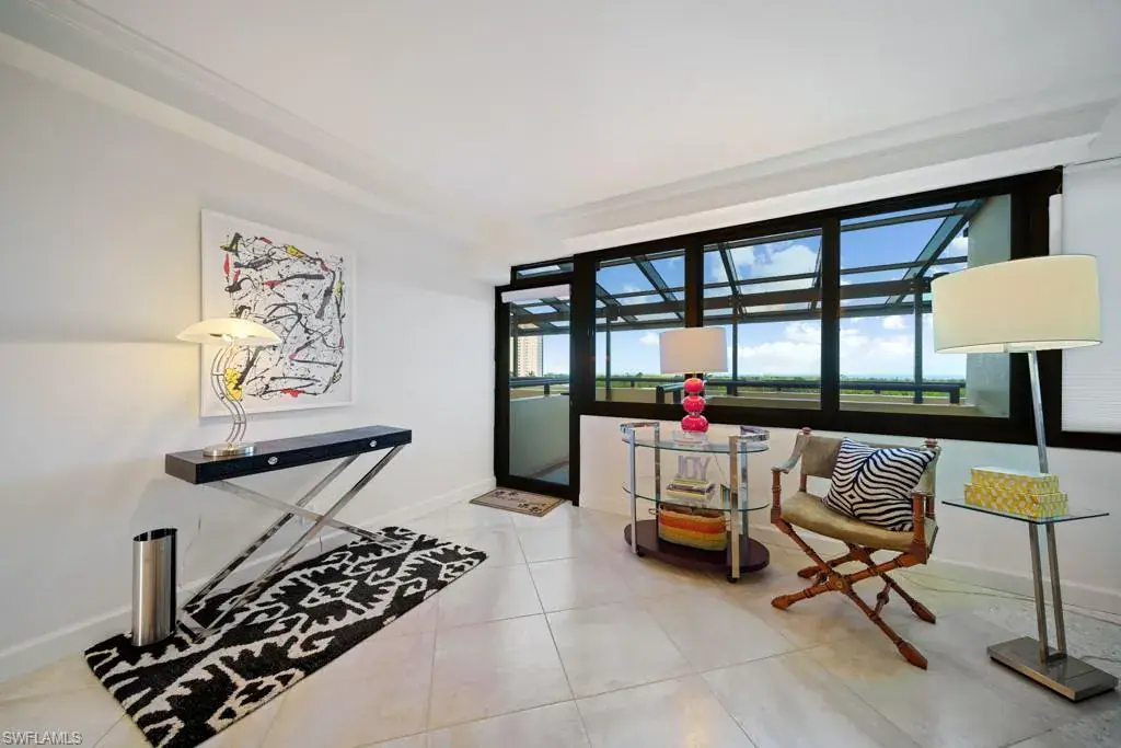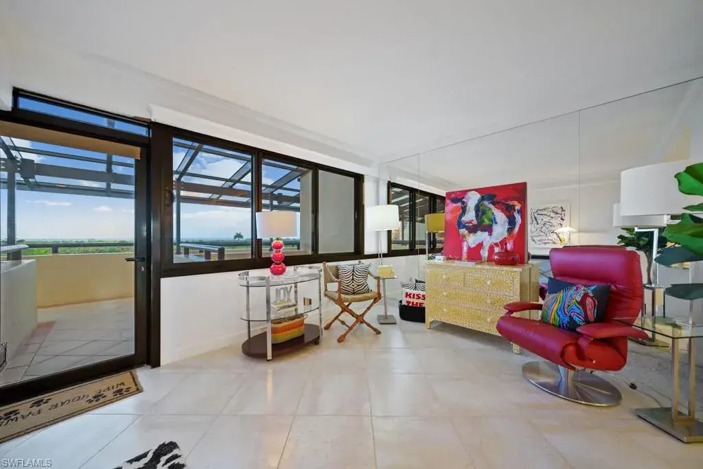 Spectacular penthouse views from the preferred A building at Hyde Park. Panoramic sunset views to the west as well as beautiful lake and golf course vistas to the east from the spacious lanai. Offered furnished. Modern renovations in 2021 re-created luxurious living spaces, baths, and kitchen, with LED lighting and mirrored accents. The spacious master bath features white marble and blue pearl granite. Hurricane Impact windows and doors allow peace of mind. Motorized silhouette and panel shades for privacy. Tram station to all the Pelican Bay beach activities is just across the street, for a short ride or walk to the beach side restaurant, bar, beach water sports, and resort style service. The new golf clubhouse and dining as well as a fully equipped fitness center, tennis courts, and miles of boardwalks and trails are what make Pelican Bay one of the most sought after communities in the country! Close proximity to shopping, shows, and dining at Waterside, Mercato, and Artis Naples, or a short 10 min. drive downtown make for the finest location in Naples, FL.