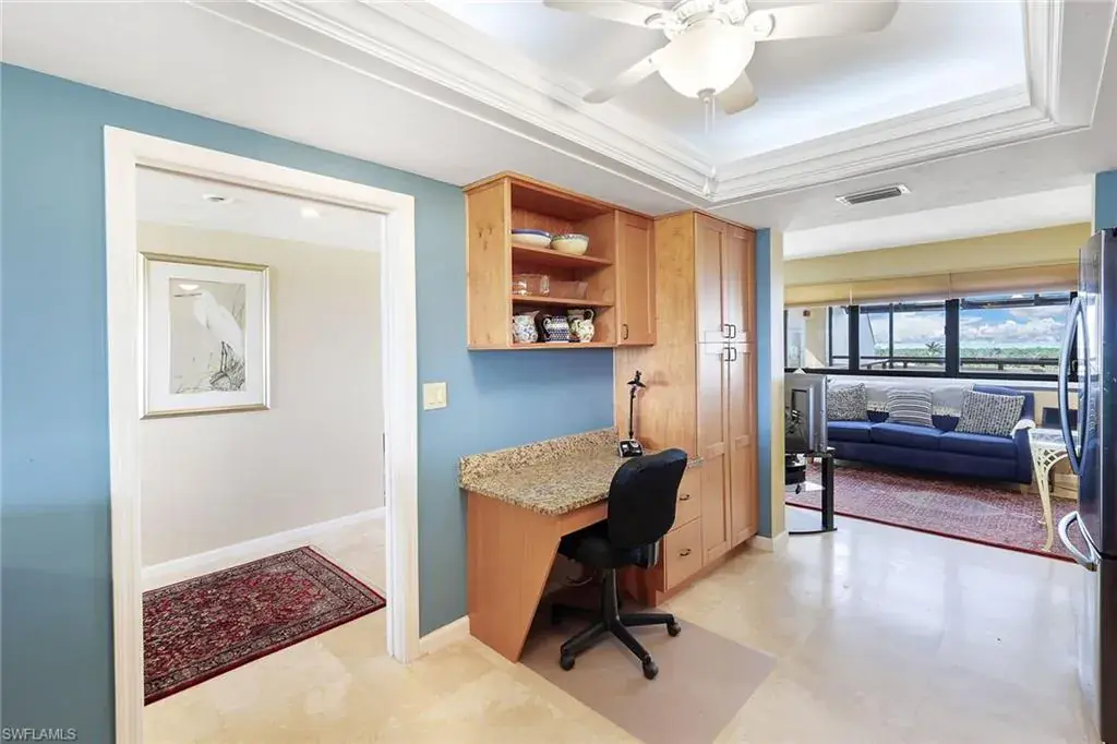 The view from this Hyde Park penthouse may be one of the most beautiful views in all of Pelican Bay. Be prepared to soak in stunning, panoramic golf course and lake views from one of your three open-air balconies. From the front of your residence, watch mesmerizing sunsets every evening setting on the Gulf of Mexico. As you head inside, you will find three extremely spacious bedrooms, an enclosed den, and an open kitchen designed for elegance and functionality. The kitchen highlights gorgeous granite countertops, solid wood cabinets, soft-close drawers as well as a built-in desk space. Additional highlights of this residence include skylights that flood the space with abundant natural light, crown molding, a designated under-building parking space and ample guest parking. This condominium is optimally across the street from the commons, tennis courts and the Pelican Bay beach tram. Hyde Park has its own lakeside clubhouse, community pool and spa, tennis court and one of the few pickleball courts in all of Pelican Bay. Pelican Bay has three miles of pristine private-beach access, two beach restaurants, a community center with a fitness center and spa, two tennis facilities, kayaking and sailing. Club Pelican Bay offers 27 holes of golf and separate membership required.