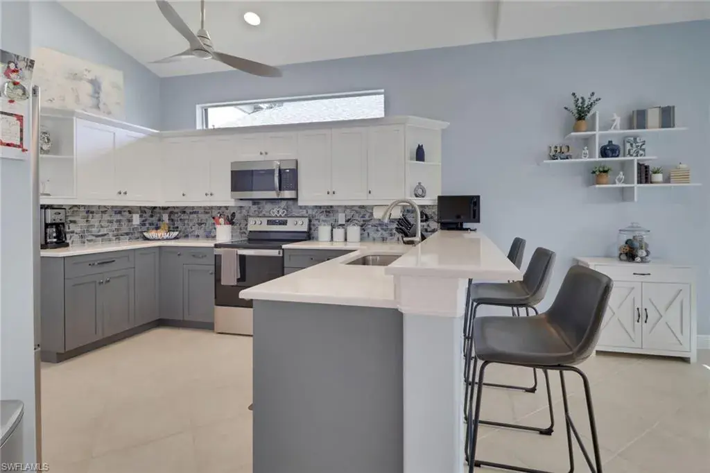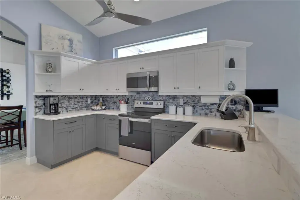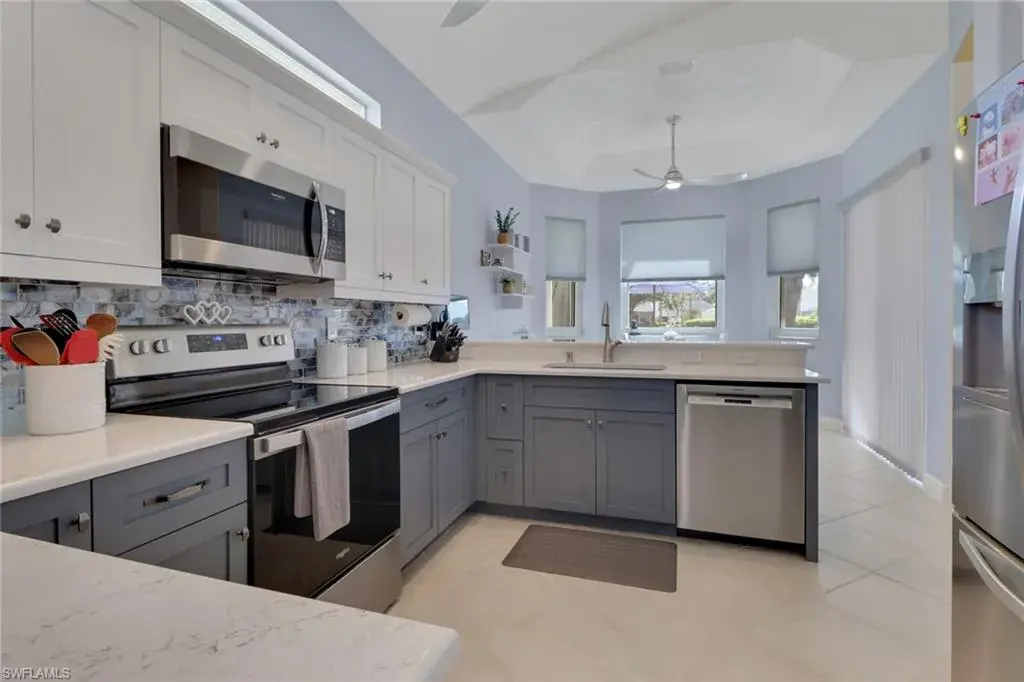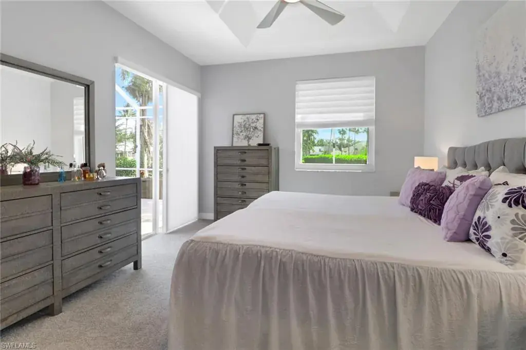 From the moment you enter, you’ll be struck by the fresh, clean ambiance and inviting warmth of this beautifully maintained TURNKEY home. Every detail has been thoughtfully considered, creating a space that feels both effortlessly elegant and comfortably livable. Nestled on a lushly landscaped corner lot with tranquil lake views, this home blends style, function, and serenity in one of Naples’ most sought-after communities. Step onto the oversized screened lanai and unwind in the brand new Wellis hot tub (with privacy curtain), an ideal spot to enjoy peaceful water views and gentle breezes. Inside, the home showcases a true pride of ownership, with updates designed to enhance both beauty and peace of mind: a new roof, gutters, A/C system, water heater, and impact-resistant windows. The kitchen has been reimagined with taste and functionality in mind featuring refaced cabinetry, granite countertops, a new sink, garbage disposal, and all new appliances. Soft, new carpeting flows throughout the bedrooms, while the updated primary bathroom and laundry room reflect a crisp, modern style. Creative touches are found in every room from custom window treatments (opening from the top for privacy), new ceiling fans, to a reconfigured walk-in closet and a statement making new front door. The insulated garage adds further comfort and efficiency. Located in a top rated school district and just minutes from beaches, shopping, dining, and entertainment, this home offers a rare combination of thoughtful design, fresh appeal, and move-in-ready convenience. Welcome home to a space that feels as good as it looks, inside and out.