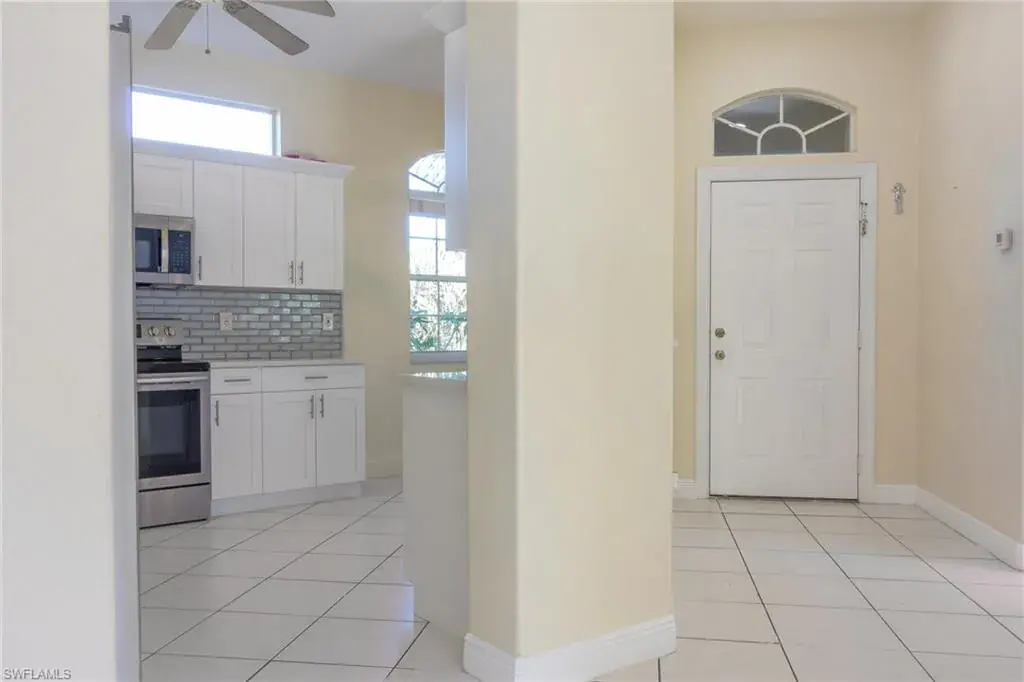 Welcome to Ibis Cove, nestled in the heart of North Naples. This charming corner-lot single-family home offers 1,523 sq. ft. under air with 2 bedrooms plus a den that can easily serve as a 3rd bedroom, 2 full bathrooms, and a 2-car garage.The open-concept layout, highlighted by vaulted ceilings, fills the home with natural light and creates a bright, airy feel throughout. Recent updates include a fresh interior and exterior paint and a new roof (2022). The chef’s kitchen is equipped with stainless steel appliances, generous cabinetry, and a cozy breakfast nook. The spacious primary suite features dual walk-in closets and an ensuite bath with dual sinks, a large walk-in shower, and a soaking tub. Sliding glass doors lead from the great room to a screened lanai offering privacy, perfect for enjoying morning coffee or evening cocktails while surrounded by lush greenery. Ibis Cove is a vibrant community with low HOA fees and amenities that include a newly updated clubhouse, resort-style pool and spa, tennis courts, playground, and picturesque lakes with fountains. It’s a wonderful place to call home full-time or to use as a seasonal rental, with an excellent location near top-rated schools, shopping, dining, and entertainment along Collier Blvd. Quick access to I-75 and just six miles from Naples’ beautiful beaches.