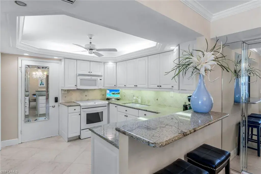 Enjoy the ultimate Naples lifestyle in this FURNISHED 2-bedroom, 2-bath condo located in the highly sought-after Imperial Club at The Moorings, a premier 55+ community set DIRECTLY ON THE GULF. This second-floor residence offers a welcoming interior with crown molding, a well-designed kitchen featuring granite countertops, tile backsplash, and a breakfast bar, and a bright, open living space. Step onto the oversized screened balcony, where views of lush, tropical palms create a serene backdrop for relaxing or entertaining. Additional features include hurricane-rated windows and a detached carport. Life at the Imperial Club means more than just a home—it’s a true BEACHFRONT LIFESTYLE. Residents enjoy direct access to the sand and surf, a beachfront pool with grilling area, exercise and social rooms, a guest suite, extra storage, and even a vehicle wash area. With no land lease and a prime location only 1 mile from The Village Shops on Venetian Bay, dining, shopping, and coastal recreation are always close at hand. This is a wonderful opportunity to own a piece of paradise and embrace the best of Gulf-front living in Naples.