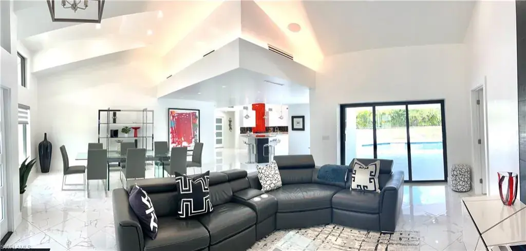 Enjoy peace of mind under a newer roof and relax in a thoughtfully designed interior featuring an expansive open floor plan, soaring ceilings, and abundant natural light streaming through hurricane-impact windows, sliders, and garage door.