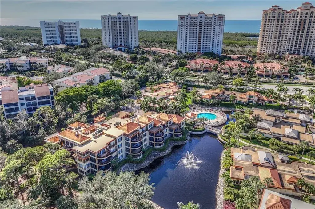 Exceptional Value in Interlachen at Pelican Bay! Rarely available, this architecturally unique building with its cantilevered lanais and metal copper roofs is perfectly situated and overlooks the lake, fountain and golf course all while providing privacy not often found in a condo home. With over 1900 Sq. Ft. and walls of sliding glass that bring the outside in, this bright, open 2 bed, 2 full-bath first floor design provides seamless flow from the great room to the dining room and eat in kitchen through to your private enclosed lanai and the open-air patio beyond on the edge of the lake. The Primary bedroom has an oversized en-suite featuring separate double sinks and dressing area, a large walk-in shower, separate spa tub and plenty of closet space. A generously sized guest bedroom and bathroom ensure your visitors enjoy the same level of comfort. Additional highlights include hardwood or luxury vinyl plank flooring throughout, granite countertops and wood cabinetry, covered parking, proximity to the pool, and the security of a financially stable association with recently updated roofs and NO storm or water damage from previous storms. Located in the heart of Pelican Bay, this residence is steps from the beach tram and moments away from Naples’ premier shopping, dining, and cultural attractions, including 5th Avenue. Pelican Bay offers unparalleled amenities such as two private beach clubs with beachfront dining and bar services, tennis courts with pickle ball coming soon, a state-of-the-art fitness center, a vibrant community center, and access to water activities like kayaking and sailing.