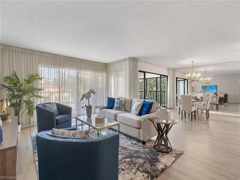 New luxury vinyl plank flooring, brand new AC & water heater, freshly painted throughout – this light & bright 2-bedroom condo overlooks a lake with a soothing water feature. The glass enclosed sunroom and inviting lakeside terrace are perfect for entertaining and relaxing. Interlachen features ‘Frank Lloyd Wright’ inspired architecture in a tropical setting with a community pool & hot tub surrounded by a moat, lakes & fountains. Perfectly located, just steps from the trams to the Beach Clubs, miles of immaculate beach, coastal mangrove forests and breathtaking nature paths, private beachfront dining, the Commons tennis center & all the other amenities enjoyed by Pelican Bay owners. The private Club Pelican Bay with 27-holes of golf, spa/fitness & private dining is an easy walk or short drive. Pelican Bay is Naples premier mixed-use beachfront community, offering its members a preeminent lifestyle that cannot be found elsewhere Florida.