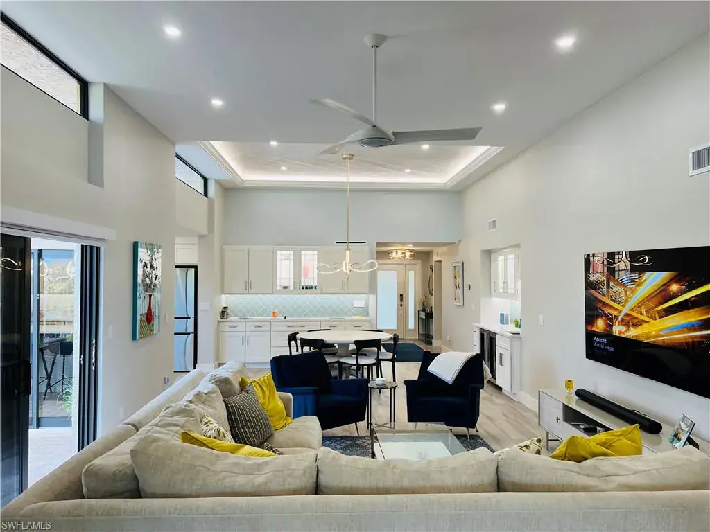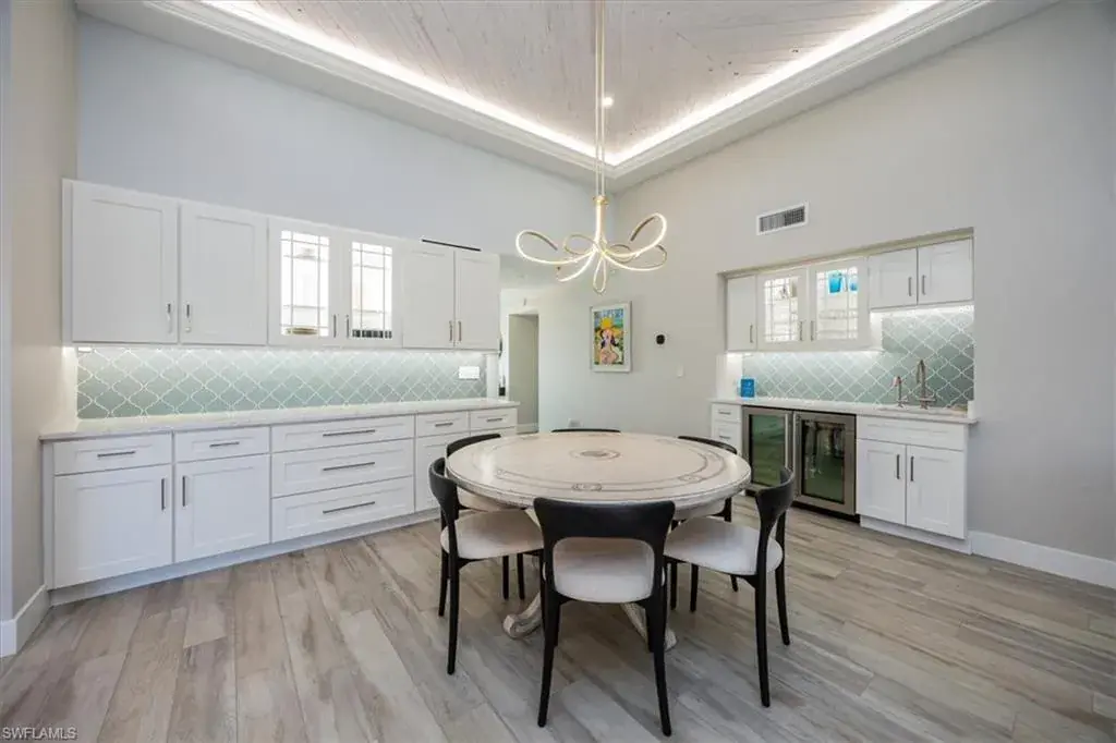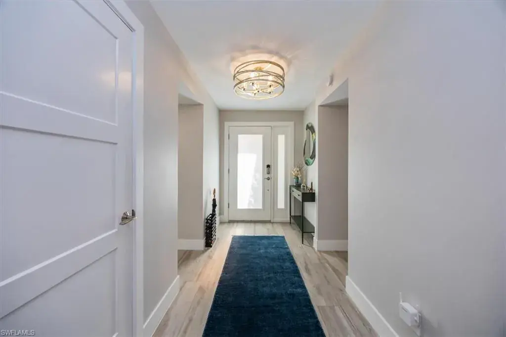 MOVE IN READY Exquisite Villa nestled on the best lot in interlachen. $500,000 in remodeling cost, every square foot of this home has been completely renovated with tastefully selected decor throughout the vast open floor plan concept. Not one detail was overlooked!! A new roof crowns the residence along with 2 beautiful courtyard garden oasis. 3 well separated en-suite bedrooms with 3 full baths, den/flex room with views. Entertaining is enhanced with a gorgeous high end appliance kitchen, quartz countertop, a wet bar with refrigeration, and a oversized built in buffet. Specialty lighting creates an ambiance of refinement including 12 ft. white oak plank lighted coffered ceilings, complete electrical system including Electrical Panel, all new wiring throughout, all outlets and Lutron switches with dimmers. Feel extra secure with all new windows and doors are hurricane impact, all new interior doors, newly painted exterior and interior, 2 reverse osmosis water system, decorative designer tile in all bathrooms, new A/C, new gutter system and soffits, updated air conditioned 2 car garage. Embrace the privilege of 3 miles of private beach access featuring two beach clubs with restaurants, 20 upcoming pickleball courts, tennis, gym, and a community center. Convenience is key with walkable access to the beach, Waterside Shops, and the Artis-Naples Performing Arts Center. Enjoy and experience the pinnacle of coastal elegance and sophistication in this stunning Naples retreat. NO FLOODING in the Villa from Ian or Milton. Community Pool, Hot Tub, and Social Events.