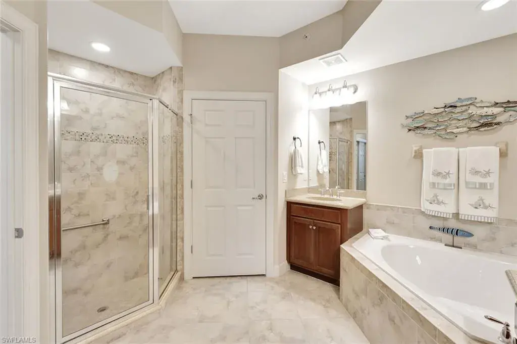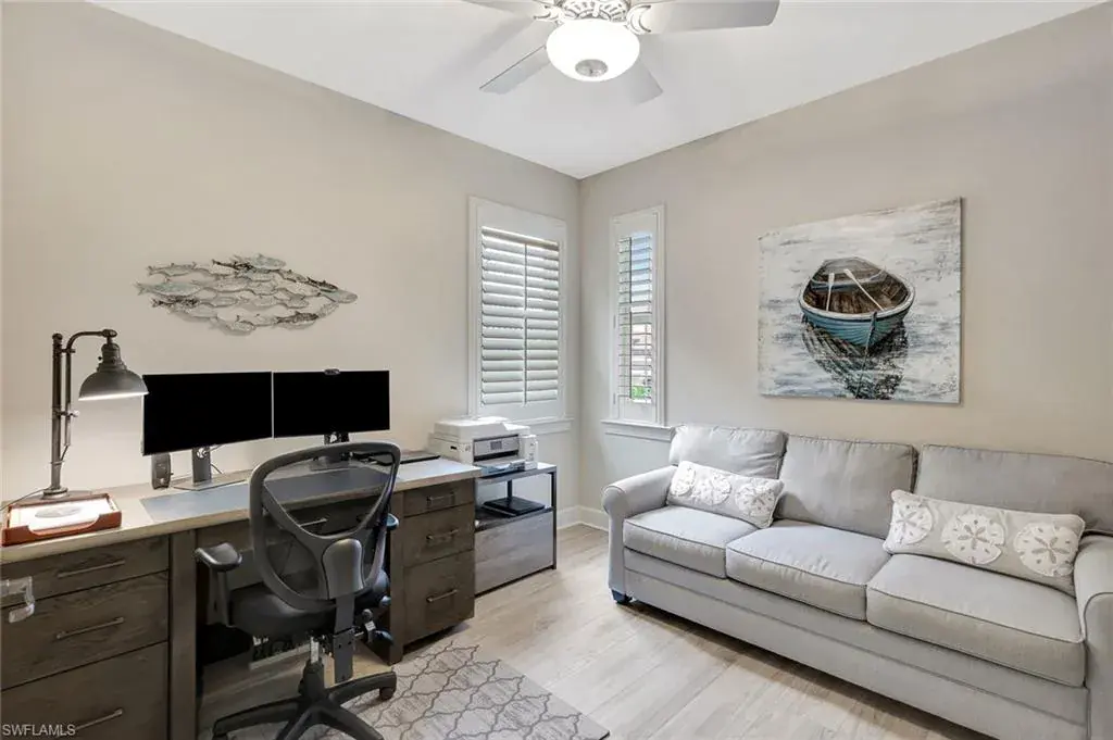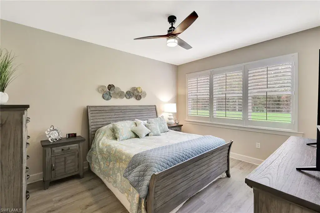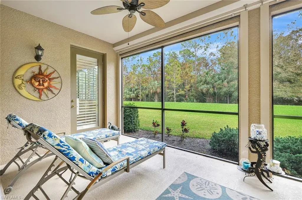 FOR A LIMITED TIME, THERE IS NO WAIT LIST FOR GOLF! Discover your dream home in this charming first-floor condo in the desirable Quarry community! Spanning just under 1,700 square feet, this beautifully updated 2-bedroom plus den, 2-bath residence offers modern comfort and low-maintenance living. Featuring newer appliances, luxury vinyl flooring, and fresh interior paint, this home is move-in ready. Elegant plantation shutters adorn every window, adding sophistication and privacy. Enjoy the spacious 2-car attached garage with sleek epoxy flooring and relax on the lanai, equipped with Storm Smart screen shutters for peace of mind. These condos are enhancing their curb appeal with new roofs, fresh exterior paint, and upcoming landscaping and lighting upgrades—all completed by year-end with no special assessment. Perfect for entertaining or quiet relaxation, this condo blends luxury and convenience in a prime location. Tucked away in North Naples, The Quarry isn’t just a community, it’s a resort-style escape on 500+ acres of pristine lakes and preserves! Vacation vibe amenities include the newly renovated beach club with restaurant, tiki bar, resort pool, lap pool, wellness center, 5 lighted soft-surface tennis courts, 3 lighted bocce courts, 5 lighted pickleball courts, a tennis shop, boating, kayaking, fishing and the full-time activities director will make sure a great time is had by all. In addition, various golf memberships are offered at the privately owned Quarry Golf Club. Designed by world-renowned architectural team of Dr. Michael Hurdzan and Dana Fry in 2007, this Par 72 championship golf course offers an unparalleled golf experience with spectacular views. Water appears on every hole, and the course is a true test for golfers of all levels. With 5 sets of tees and a unique layout to every hole, you’ll never get tired of challenging this exceptional course. Don’t miss your chance to own this meticulously maintained gem in The Quarry!