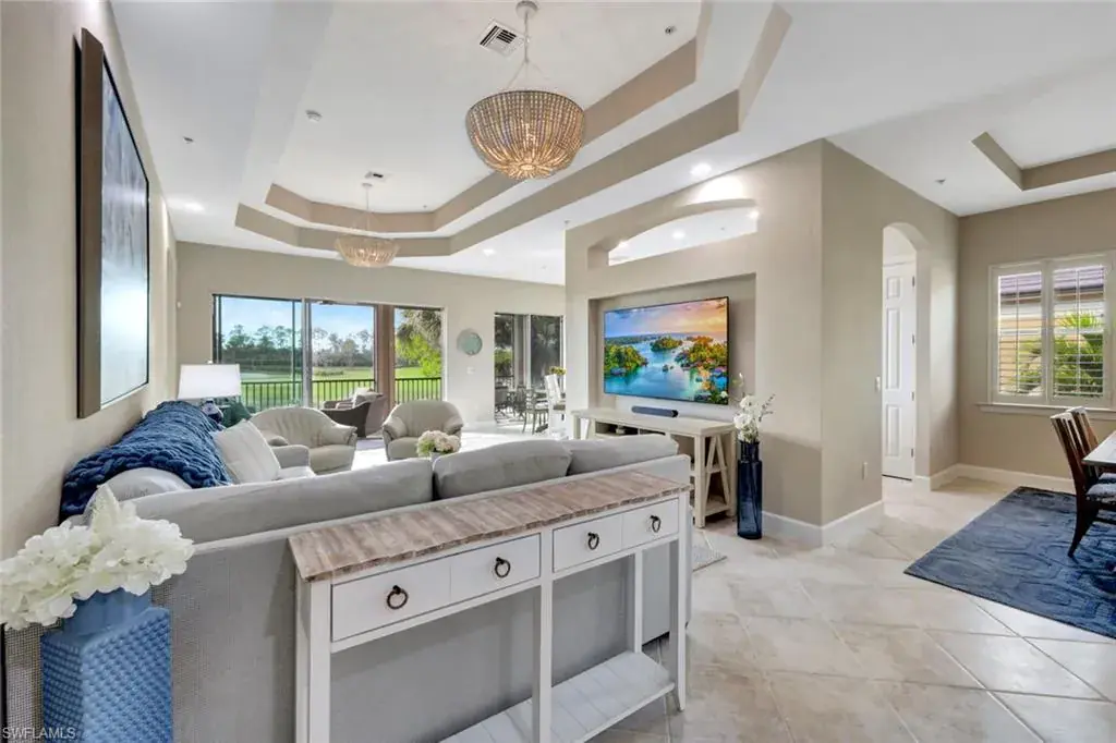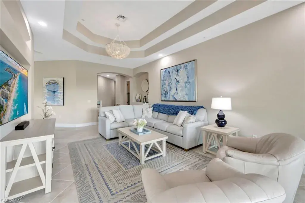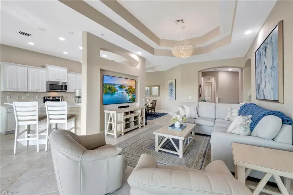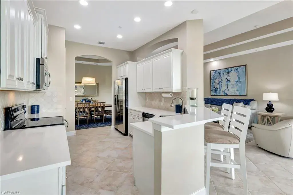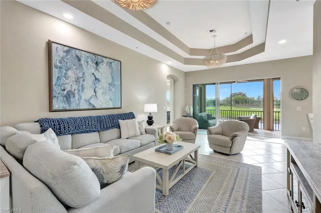 Experience luxury living at The Quarry with this meticulously maintained second-floor Coach Home. This beautiful residence boasts 4 Bedrooms, 2 1/2 Baths, and a spacious 2-car attached garage all with stunning Lake & Golf Course views. Inside, you’ll find a beautifully upgraded kitchen featuring custom cabinets, tile backsplash, new Quartz countertops, plantation shutters, and modern lighting, including elegant chandeliers and energy-efficient Can “daylight” fixtures. Additional highlights include stylish tile, new luxury vinyl flooring throughout, a brand-new (never used) Murphy Bed, and Storm Smart roll-down hurricane screens on the lanai for added comfort and protection. As a resident of The Quarry, you’ll enjoy a wide array of world-class amenities, starting with the newly renovated Beach Club. This impressive facility offers both an indoor and outdoor restaurant, a Tiki Bar, and a full-time Lifestyle Director. Relax by the Lap Pool or Resort-Style Pool, complete with food and beverage service. Stay active with the state-of-the-art Fitness and Wellness Center and enjoy various sports including Tennis, Pickleball, and Bocce. The community’s 500 acres of navigable lakes provide ample opportunities for boating, water skiing, paddle boarding, jet skiing, and fishing. All Beach Club amenities are included in the HOA dues, ensuring both convenience and exceptional value. For golf enthusiasts, The Quarry features a remarkable 18-hole championship golf course (membership optional). Don’t miss the opportunity to call this remarkable community home. Discover The Quarry today and elevate your lifestyle to new heights!