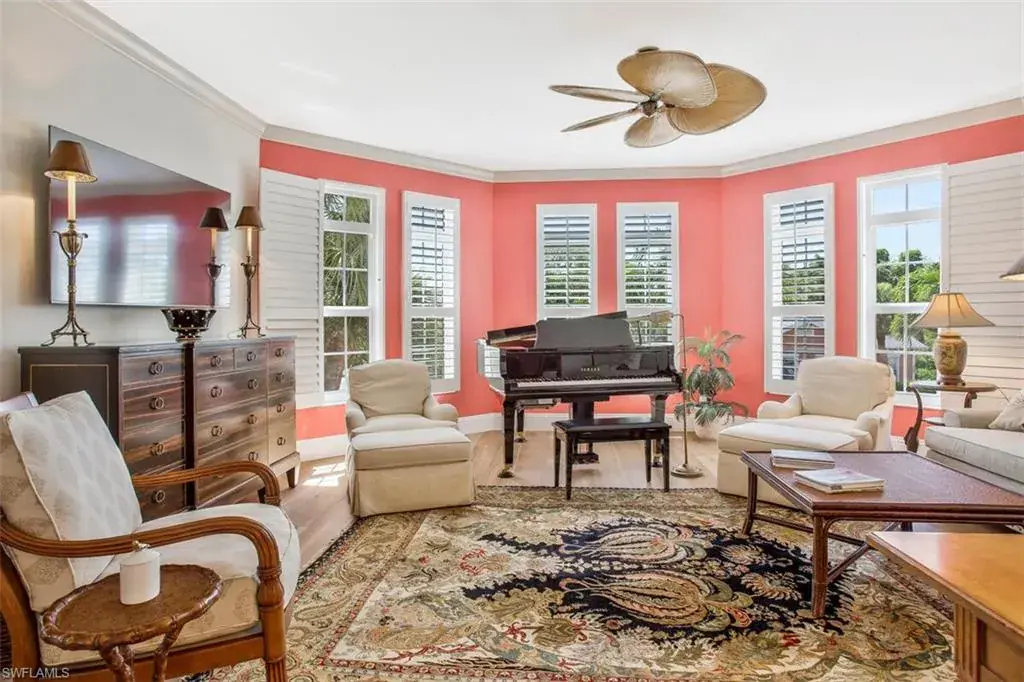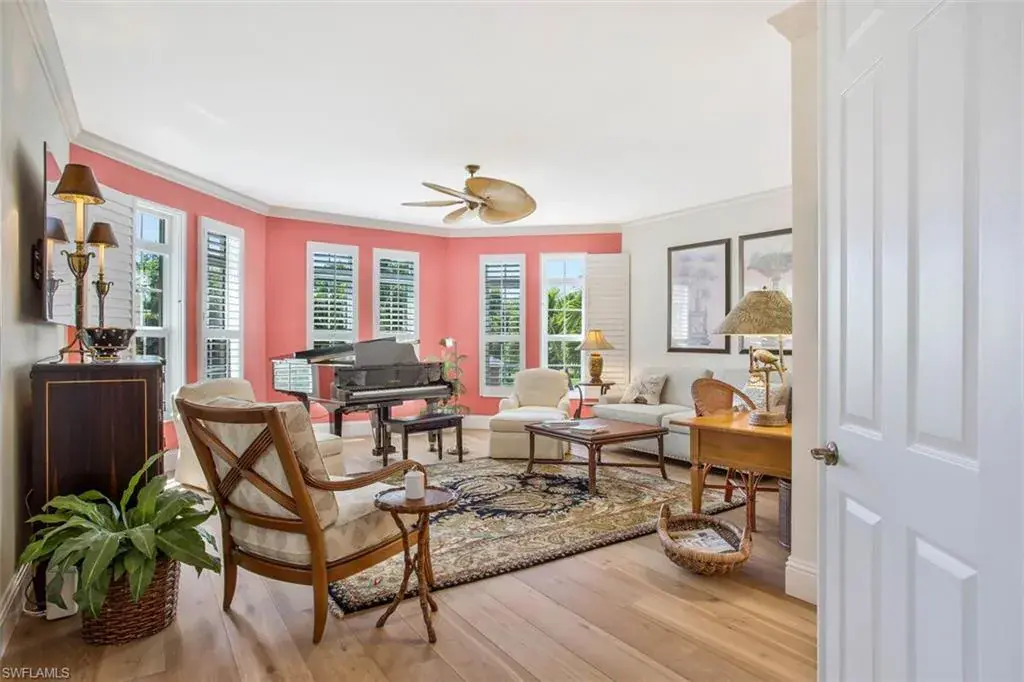 Situated at one of Old Naples’ highest elevations, this property has withstood recent hurricanes with no storm surge reaching the garage level, ensuring peace of mind.