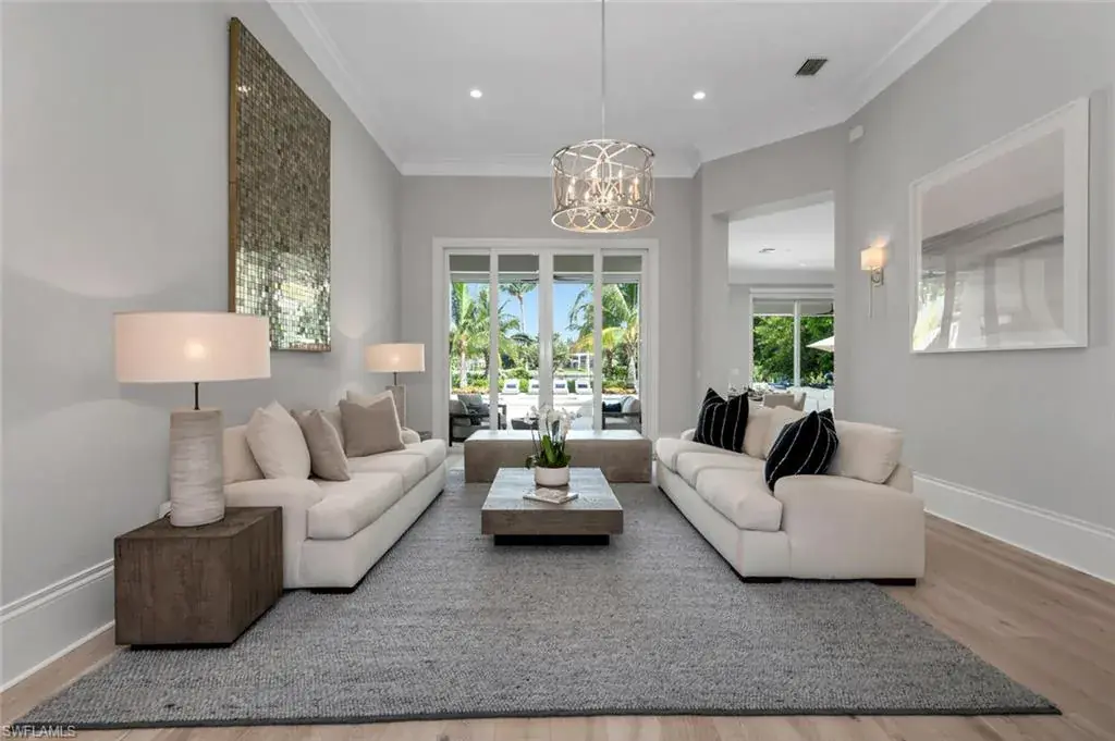 This extraordinary residence is completely renovated and has IMMEDIATE golf membership in Grey Oaks. Imagine entering a home that has everything completed, furnished in the highest quality furnishings, and spectacular golf course and lake vistas…with a large backyard for your dog and kids/grandkids! Completely re-imagined with wide-plank, white oak wood flooring throughout, all archways have been squared off, Chef’s gourmet kitchen with high-end appliances, all new bathrooms, new LED fixtures, and designed with impeccable taste. Roof & windows? Fret no more, as this residence has a new roof, as well as impact windows and doors. This home is perfect for entertaining, with a large, new lanai and pool, outdoor kitchen with automated screens…and how good will those s’mores taste around the fire pit? From the moment you enter, you will be mesmerized by the spectacular views, expansive pool and fenced garden, drawing you outside. Golfers will relish the views of the 5th hole on the Palms Course. Truly, you have found a jewel with this home, which is located in a club that has the finest amenities available, yet only minutes from all that Naples has to offer. Welcome home…