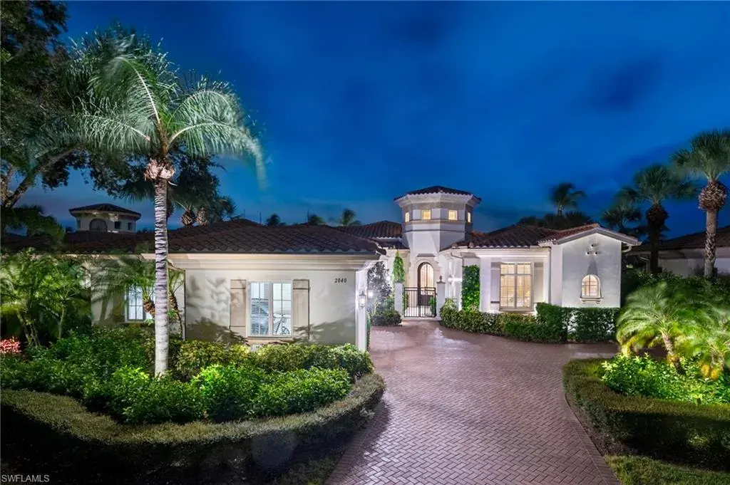 Additional features include a two-car garage, a separate golf cart garage, landscaping & updated lighting, and a redone paver driveway to match the neighborhood street pavers.