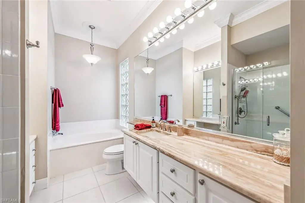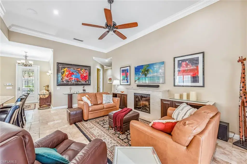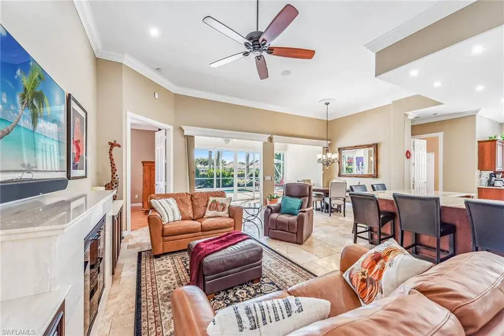 This home will make you the envy of all your neighbors with its extraordinary floor plan improvements and upgrades! Spacious and magnificent, this home strikes a tone. It’s one of a kind. Completely renovated Carlyle pool home features a custom, high-end chef’s kitchen featuring self-closing cabinets, quality stainless steel appliances, large flat top granite countertops, large island and it lends itself to the ultimate modern, open floor plan. This home boasts custom, travertine stone flooring throughout and onto the lanai, and is nicely complemented by hardwood bamboo flooring in the flex room and primary bedroom. Crown molding, surround sound and custom cabinets fine-tune your place in the sun. Granite tops in all baths, additional custom side patio off the kitchen with awning. An extra wide driveway further serves your convenience as upgrade. New roof in 2019. New wall oven and new dishwasher in 2018. New refrigerator in 2019. New cooktop in 2019. New washer and dryer in 2021.