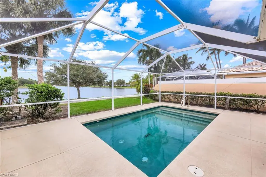 Breathtaking Western Sunsets from your private pool and lanai looking down an amazing long lake view in beautiful Island Walk. This Capri model is perfect for relaxing and entertaining. This spectacular scenery can be enjoyed from the kitchen and living areas. This 2 bedrooms/2 full baths villa is sunlight filled. Tile flooring throughout the main living areas. Built in cabinetry in the living area for your media needs. The quiet cul de sac location adds serenity to your oasis. Residents of Island Walk residents enjoy access to exclusive amenities including a Resort style pool, a separate lap pool, a newly renovated Towncenter, 7 Tennis courts, 4 pickleball courts, bocce, a state of the art fitness center, Restaurant, Hair and Nail Salons, Car Wash, Gas Station and Post Office. Close to Naples’ sandy beaches, wonderful shopping, and dining.