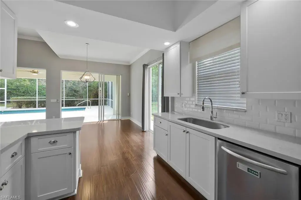 This remarkable and totally customized and redesigned spectacular 3/2+den Oakmont Model in IslandWalk Divosta Signature Community. This designer detailed home features wood floors throughout entire home, together with Beautiful Custom Quartz Granite Countertops, Stainless Steel Appliances , Custom tile backsplash & Plantation Shutters. Great Room features 12 ft. ceilings great for entertaining. Crown molding thru out. Step out to you heated pool and large screen in lanai great for BBQ’s. You will be glad you chose a home that features DiVosta steel reinforced poured concrete construction and is located within easy walking or biking distance to all the Island Walk TownCenter amenities. LOW FEES and NO CDD make this Award Winning Community with Town Center amenities and see the resort and lap pools, 8 har tru tennis courts, state of the art fitness center, putting green, bocce courts, post office, restaurant, gas station, car wash, hair and nail salons. Come Enjoy Paradise !!