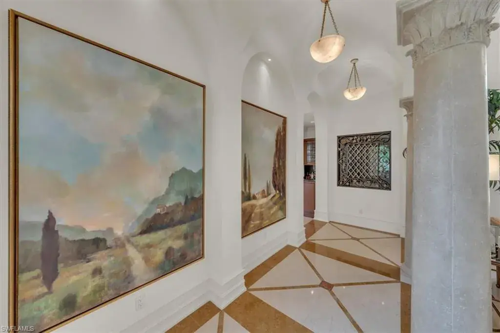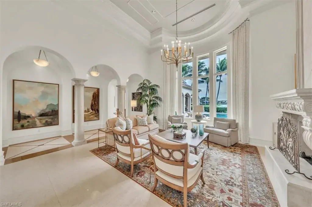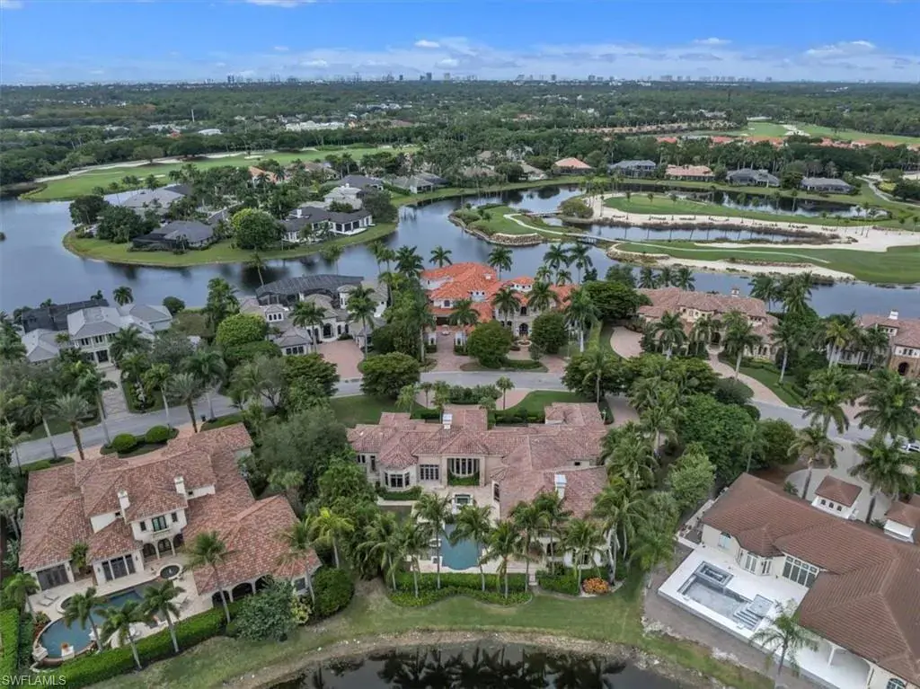 IMMEDIATE GOLF MEMBERSHIP ON THE MOST BEAUTIFUL ELONGATED LAKE LOT AND GOLF COURSE VIEWS ON THE MAIN CAMPUS OF GREY OAKS. A true value in Isle Royale, known as being one the most exclusive streets in all of Grey Oaks, this gracious 6500 sq. ft. on one level makes this the perfect oasis to not only live in very comfortably but also to entertain flawlessly. Featuring a spacious primary suite with seating area, two large walk-in closets as well as a couples dream spa like bathroom. Three additional bedrooms en-suite privately positioned on the opposite side of the home. A large theater room, beautiful office, chiefs’ kitchen with double wet islands, an abundant family room and immense loggia and screened lanai with outdoor kitchen, bar and fireplace. A gorgeous resort pool and spa add to the serene oasis while watching the sunset over the lake and golf course.