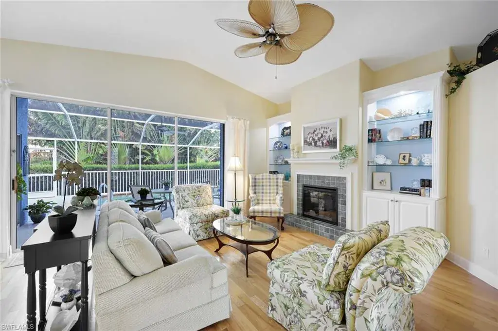 This 2001 built inland home on the Isles of Capri will delight with its 3 Bedroom, 2 Bath layout, screened in swimming pool, and two car garage. Featuring a walk-in shower and a jetted tub in the primary suite along with a separate water closet allowing for maximum privacy. The second and third bedrooms allow for family, friends, or work-from-home office space. With a fireplace in the living room, and built-in cabinets you’ll enjoy cozy living island style. The kitchen, with bar, allows for easy meal prep or entertaining all while overlooking your private heated pool. Hang out on your lanai poolside and enjoy the island breezes while having cocktails in your own private oasis. With a nearly 12′ slider that opens completely your into and outdoor space become one. The pool sits at the living level so it’s an seamless step out of your family room into your outdoor space. Sitting above the current floodplain, this home has never had any type of storm surge. The Isles of Capri is one of Naples’ last hidden gems. With approximately 1800 full and part-time residents, Capri has a unique home-town feel. Nestled between Naples and Marco Island, the Isles of Capri features four restaurants, a church, a fire station with EMS, and a two mile walking path.