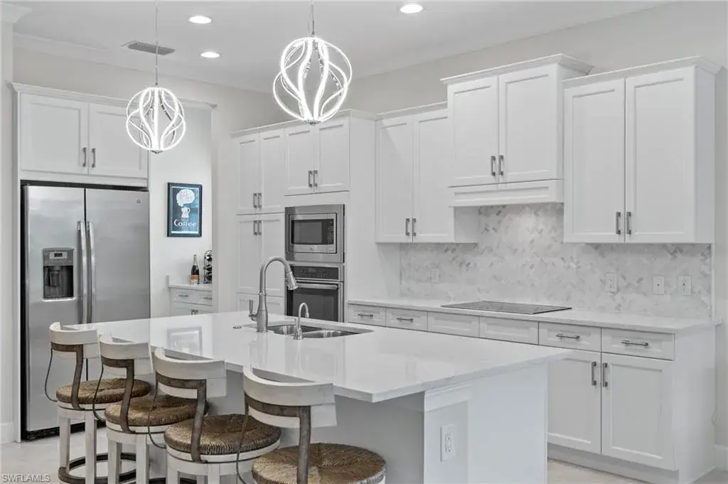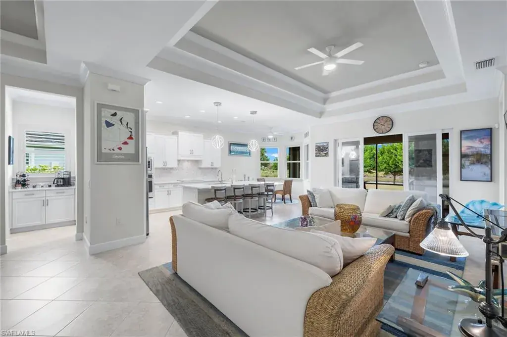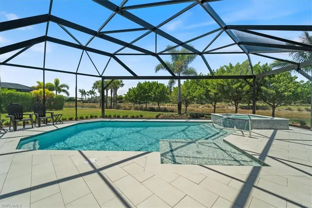 NEW Custom Pool is complete! Welcome to your own slice of paradise at 5797 Anegada Drive, nestled in the prestigious Isles of Collier Preserve in Naples, FL. This beautiful lakefront cul-de-sac home offers a harmonious blend of elegance and modern comfort, perfect for those seeking a serene and luxurious lifestyle. Step inside this 2,016 square foot single-family residence, where an open-concept design seamlessly connects the living spaces, making it ideal for both relaxation and entertaining. The home features three spacious bedrooms and two well-appointed bathrooms, offering privacy and comfort for both owners and guests. The split-plan layout ensures a tranquil retreat for everyone. The heart of this home is the expansive rear yard, highlighted by a custom, picture screen-enclosed pool with spa and sun shelf. This stunning pool area, adorned with beach-sand evoking porcelain tile and two fountain white noise bubblers, serves as a day and night focal point, providing a peaceful oasis for relaxation and enjoyment. Beyond the pool, the expansive yard offers exceptional landscaping which includes 3 new palm trees, sculpture garden, and playgrounds for both adults and children. This home is designed for minimal maintenance and hassle-free living, featuring numerous upgrades such as impact windows and doors, elegant molding, custom cabinets, stylish window treatments, plantation shutters, a tile backsplash, modern lighting, and ceiling fans throughout. A separate coffee area adds a touch of convenience and luxury to your daily routine. Residents of the Isles of Collier Preserve enjoy low HOA fees and a wealth of community amenities, including cabanas, a resort-style pool, a lap pool, a gym, tennis courts, and pickleball courts. The community offers a variety of social opportunities and is conveniently located near downtown Naples, providing a secure and comfortable lifestyle. With its prime location outside of the flood zone, identified as zone “X” in the updated 2024 flood zone maps, this property offers peace of mind and lower insurance costs. Embrace the elegance and tranquility of this exceptional home and make it your own haven in Naples.