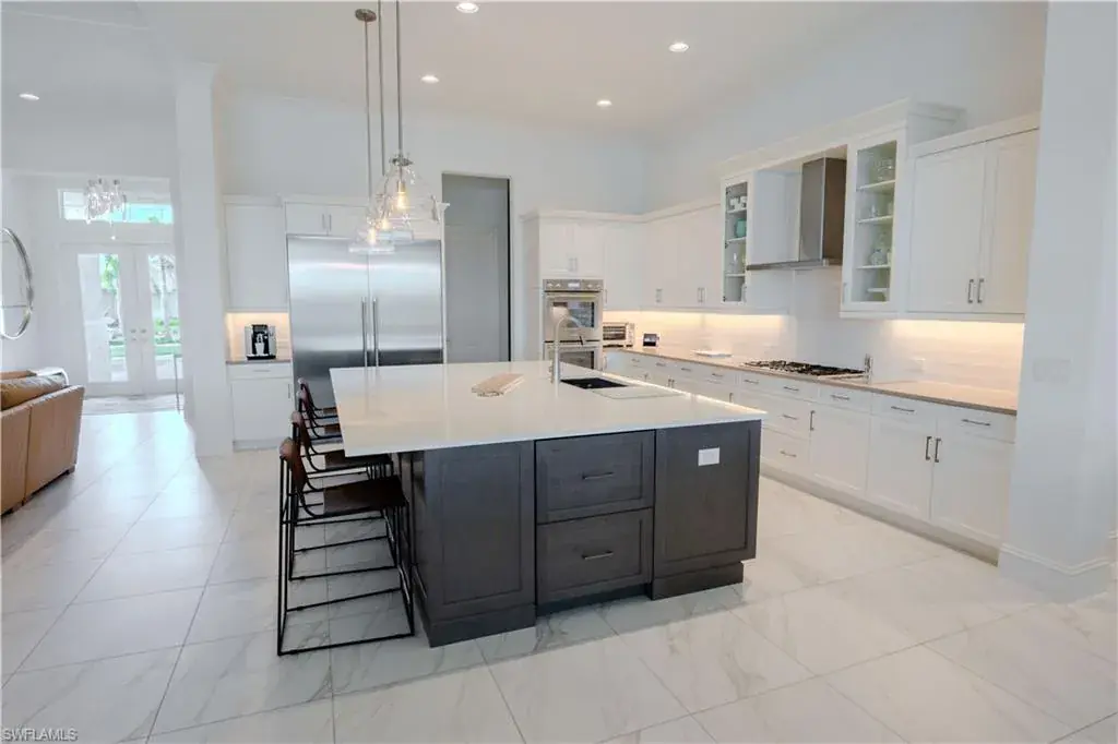 Welcome to the most elegantly designed, option-loaded, award-winning Stock-built Cocoplum home. Located in a No Flood Zone inside the highly desirable Isles Of Collier Preserve with breathtaking sunrise and sunset views from your lanai. With many custom features, hundreds of thousands in options including built-in Thermador Appliances, tiled floors throughout the complete home, coffered ceilings with innovative lighting, and custom-designed wall features. Uniquely designed custom showers in each of the 4 en-suite bathrooms. The Primary bedroom showcases an elegant John Richards chandelier, custom-designed his and her walk-in closets, and a private walk-out to the lanai. The spacious north-facing cul-de-sac lot is professionally landscaped with cascading palm trees to further enhance the outdoor beauty of this home. This spacious property boasts 5500 total square ft, including 3693 sq ft under air, to enjoy and entertain. Don’t miss out on your opportunity to fall in love with this stunning luxury home!