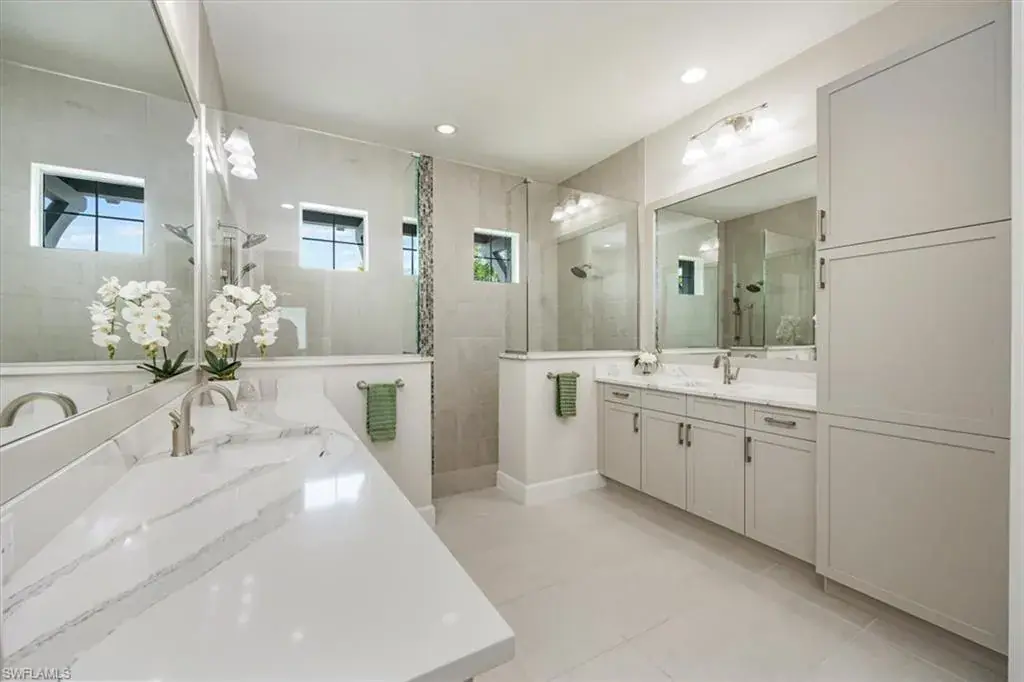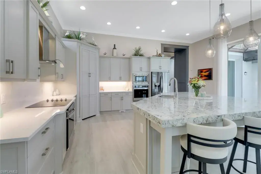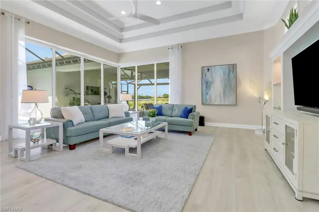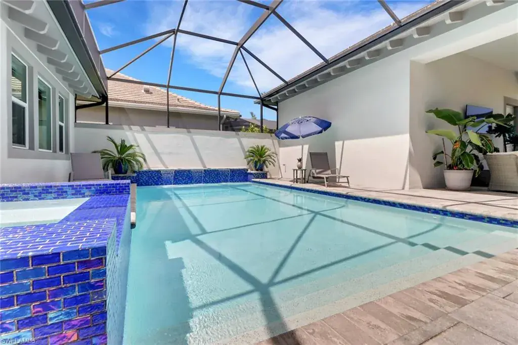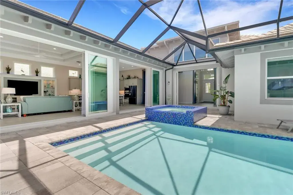 Experience the ideal Florida lifestyle in this beautifully crafted home offering tranquility, privacy, and stunning sunsets along the Cypress Waterway. Inside, soaring ceilings and 10ft pocket sliders blend indoor and outdoor living across 3,200 sqft of elegant space. This 3+den, 3.5 bath courtyard home features a detached cabana with full bath, kitchenette, and closet—perfect for guests or flexible living. Enjoy a modern kitchen with quartz countertops, walk-in pantry, and large island, plus a luxurious primary suite with spa bath and dual custom closets. Additional highlights include an office with 18ft tray ceiling, private guest suite, formal dining room, extended lanai with outdoor kitchen, and a solar-heated pool and spa. Enhanced with custom millwork, impact windows, water filtration, central vac, and garage storage, this home offers comfort and sophistication in every detail. The gated community of Isles of Collier Preserve epitomizes the Naples active/casual lifestyle by offering a resort pool, separate lap pool, pickleball, tennis, gym, bocce, restaurant, kayaking, and miles of biking paths and walking trails. All of this is located about 4 miles from the iconic downtown 5th Ave. fine dining, shopping and entertainment, and white sandy beaches.