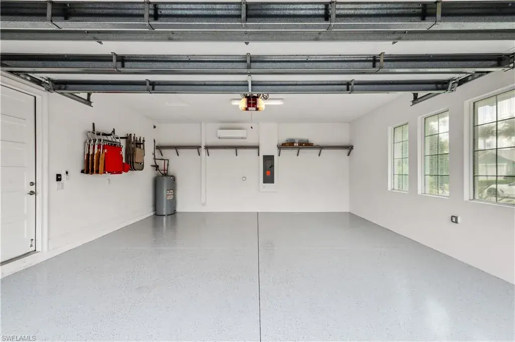Function meets design with an air-conditioned, epoxy-floored two-car garage, plus a separate one-car garage with slat-wall and bike storage.