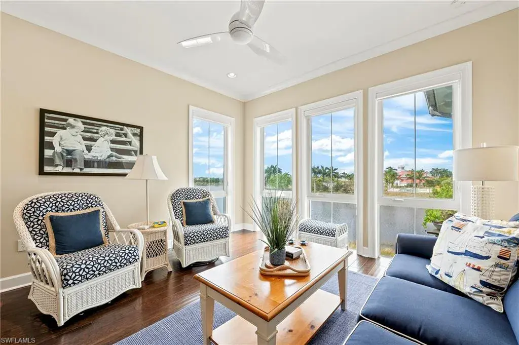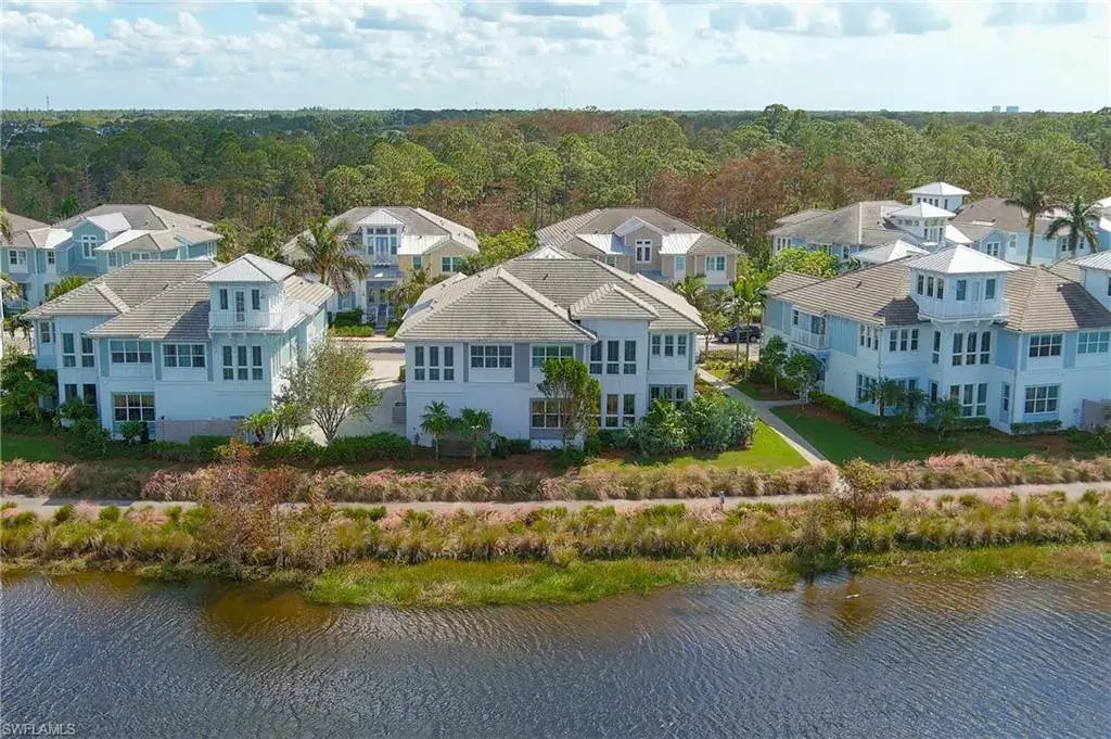 Highly desired Hibiscus Retreat floor plan! This Coach home, in a gated community, is waterfront and located only 90 feet from the Cypress River Waterway’s widest point (ocean water) that offers spectacular, unobstructed views from kitchen, great room, sunroom, and side balcony. Enjoy views of daily sunsets, two boat docks, club house, pool, and numerous wildlife. Cypress River has access to the Gulf of Mexico. Coach homes are built to strict high-quality commercial standards and is fully sprinklered and NOT IN A FLOOD ZONE (Low home insurance, the seller currently is paying $678 a year for HO6 home insurance). This popular 2,781, sq. ft. Hibiscus Retreat coach home floor plan is rarely available. It has 3 bedrooms, 3 baths, den/office, sunroom, loft retreat, covered front porch and two outside balconies. You have your own PRIVATE ELEVATOR that services the entry level, main floor, and loft on the third level. Coach home features include impact glass, vaulted ceilings, crown moldings, plantation shutters, beautiful hardwood flooring throughout (except for tile bathrooms), quartz countertops, walk-in closets in master suite, custom closets in other 2 bedrooms, large 2 car garage with an array of built-in storage cabinets and three ceiling bike racks. New HVAC installed 5/6/22. The Isles of Collier Preserve is a gated community which is only a 10-15 minute drive to Old Naples, 5th Ave restaurants, shopping, art galleries and pristine white sand beaches. First-class amenities include: resort style pool, spa, separate lap pool, club house, state-of-the-art fitness center, locker rooms, saunas, tennis, pickle-ball, bocce, miles of walking/biking paths, pool-side restaurant, kayaking, canoeing, paddle boarding, and dog park all in an environment with more than half of The Isles being a natural preserve.