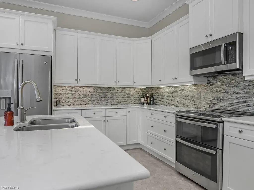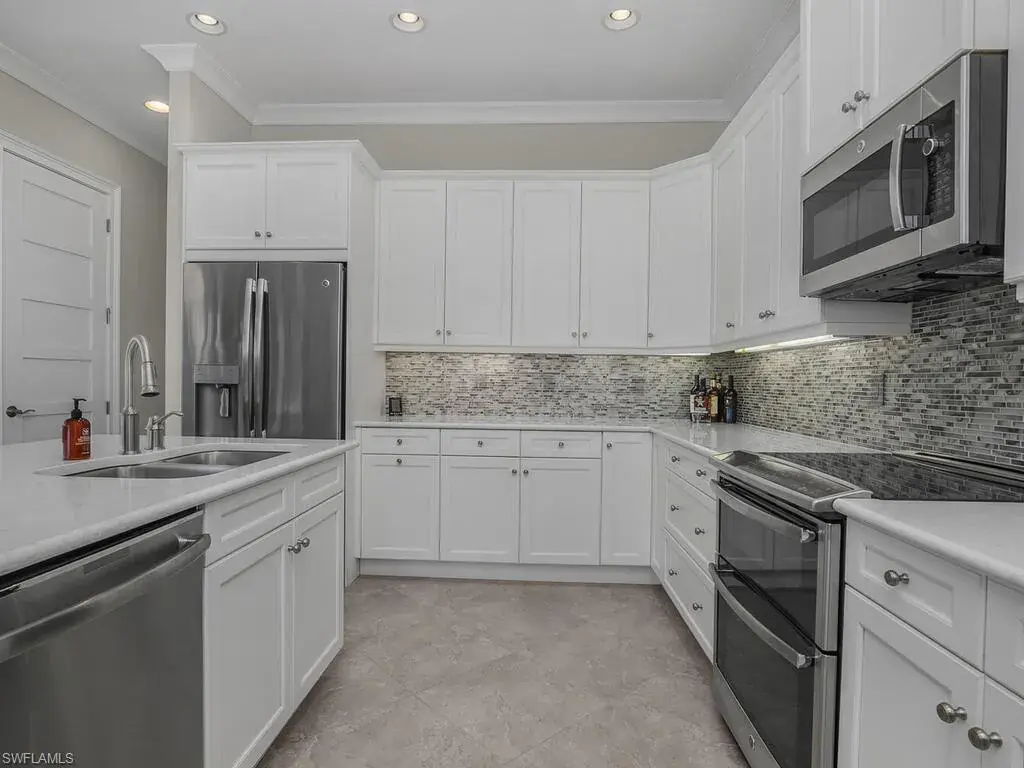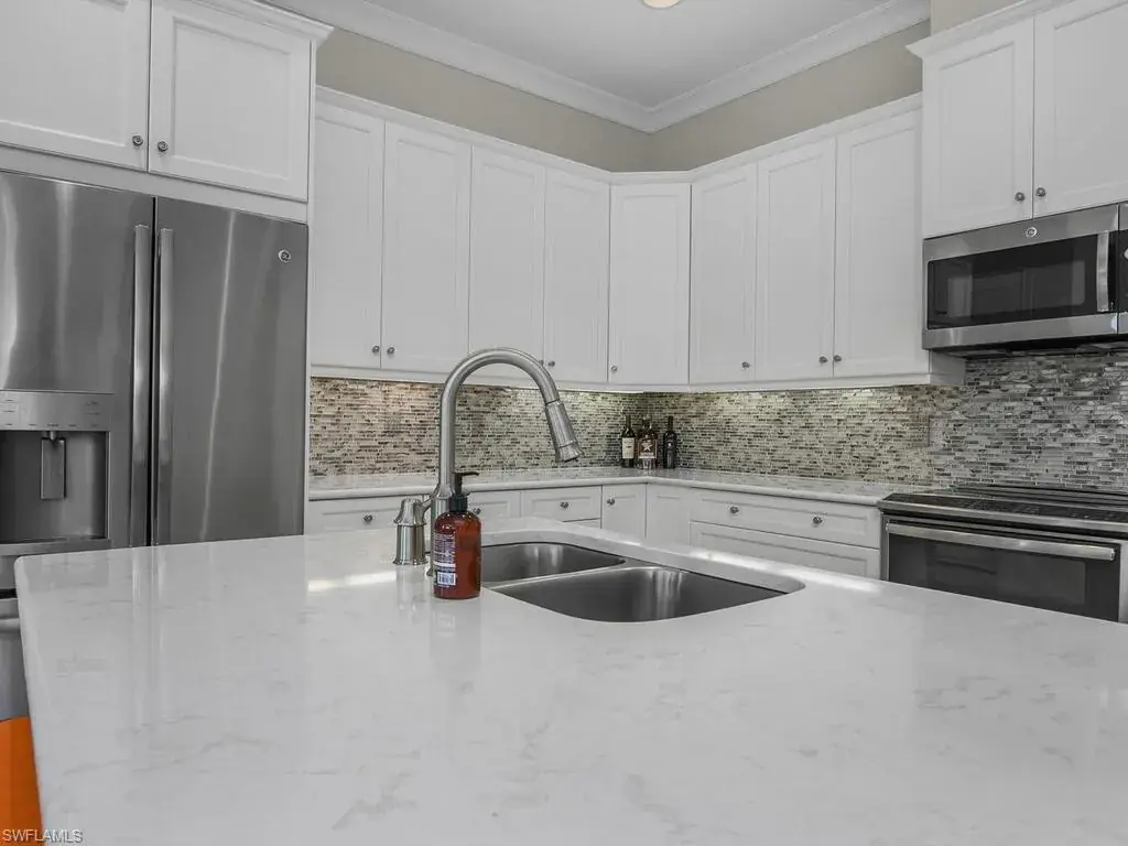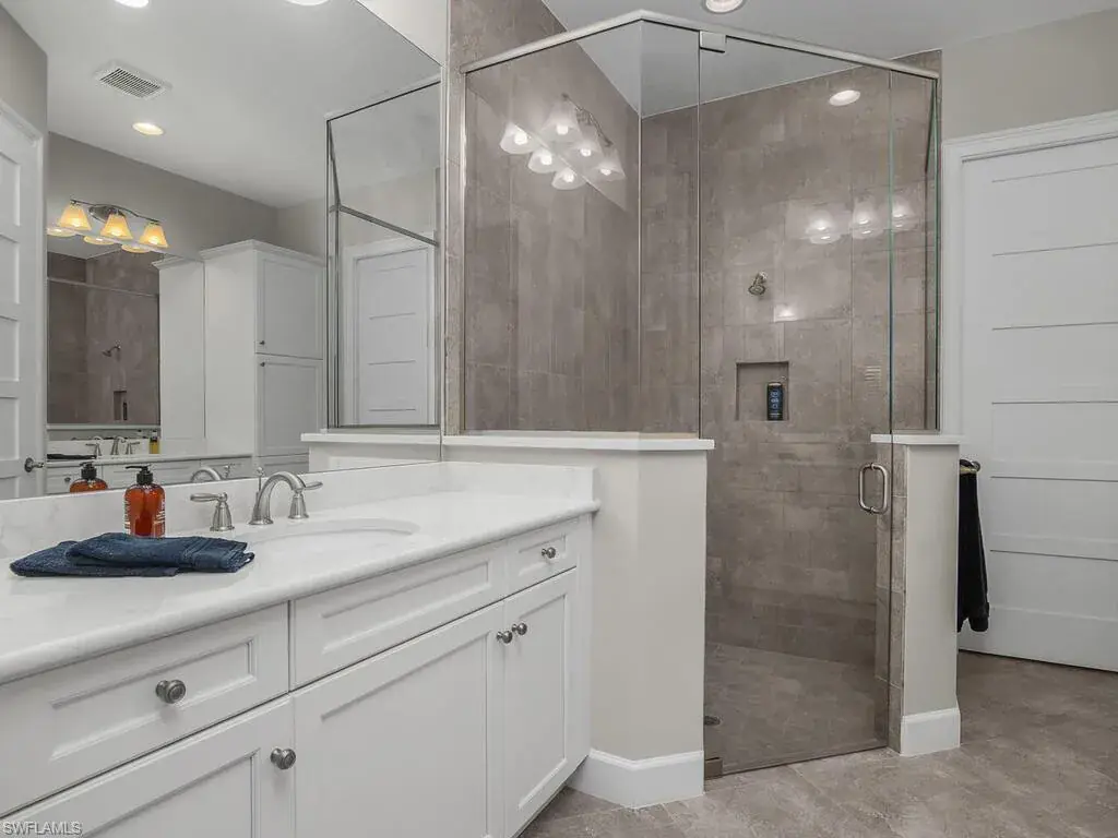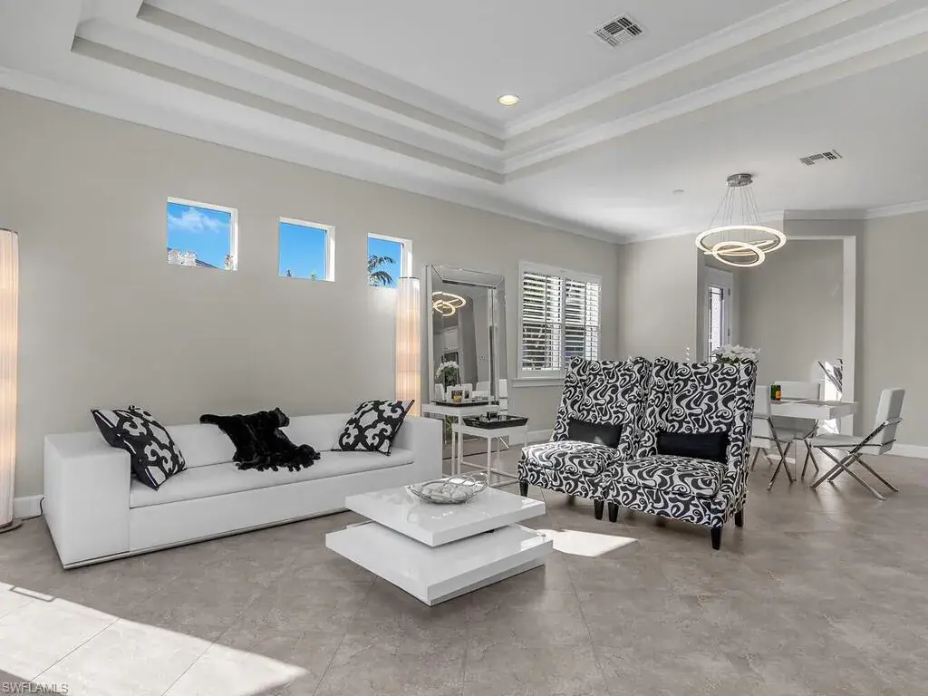 Honeysuckle floor plan, one of the larger plans offered, with a Center Island Kitchen, White Cabinetry, Quartz Countertops, breakfast bar, tile flooring. One of the best lot locations in ICP. Long lake views, oversized lot. Pool and Spa, Screened-Lanai overlooking a beautiful water view. Crown molding. High end furnishings, with a Coastal color palette throughout, very neutral. High end fans and fixtures. Impact doors and windows. Roomy Den/Office offers a Bay Window Style bump out. Huge separate Laundry Room, sink upgraded washer and dryer. The lanai is wider in the Honeysuckle compared to other plans, the master bath is larger than other plans as well. This home has been occasionally occupied and looks like new. The Isles has been developed on over 2400 acres 1300 of which are dedicated to Natural Habitats. Residents enjoy Luxury Amenities at the Isles Club which was modeled after the original Naples Beach Hotel of the late 1800’s! The Overlook Bar and Grill is located on the water’s edge. Pickleball and tennis and bocce ball courts, Kayaks and Paddle boards are provided. There is a lap and community pool and spa, sauna, modern full size gym, yoga and more! ICP is ideally located less than 5 miles from downtown 5th Ave and the beaches, combined with Low HOA fees make this one of the premiere locations in all of Naples.