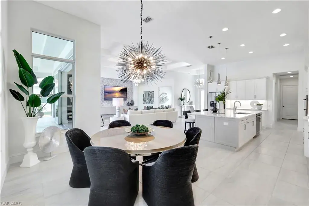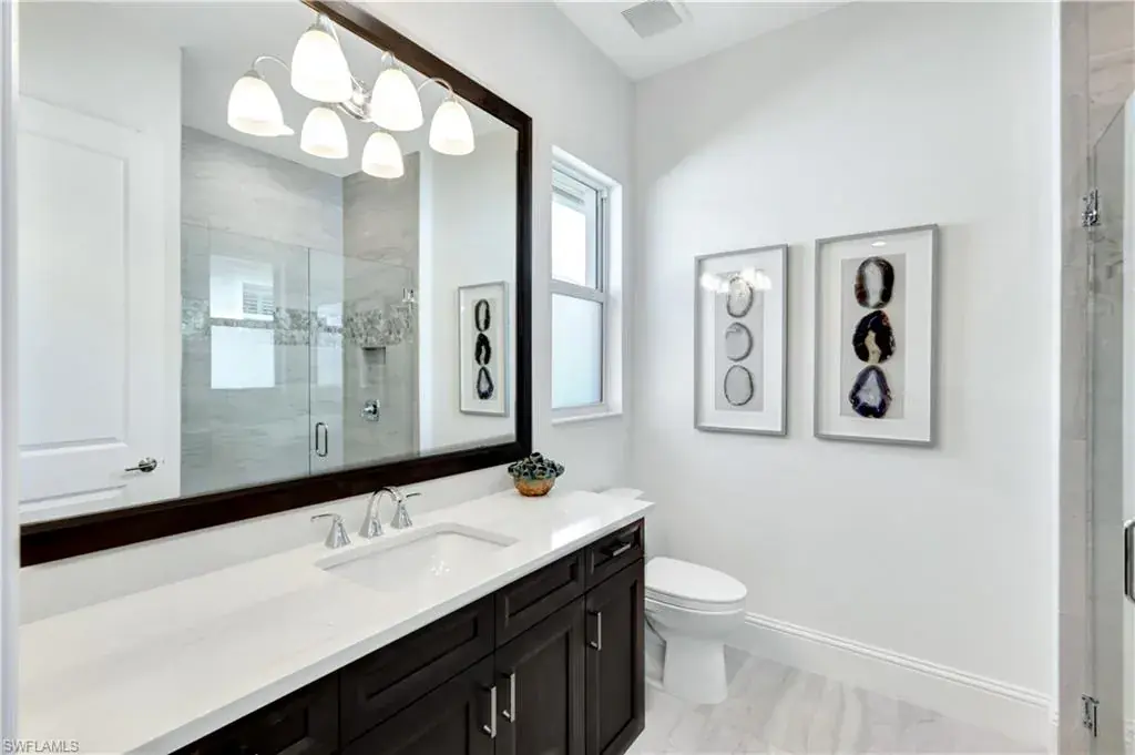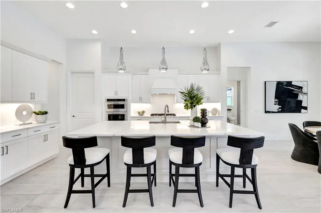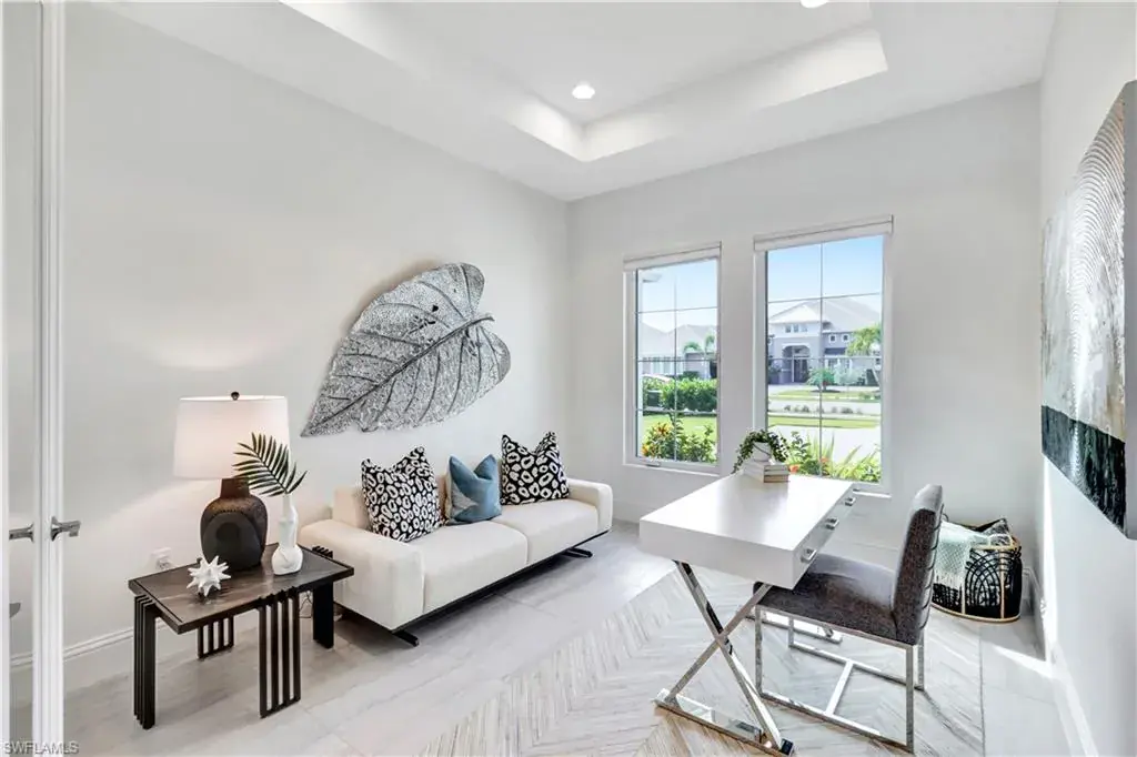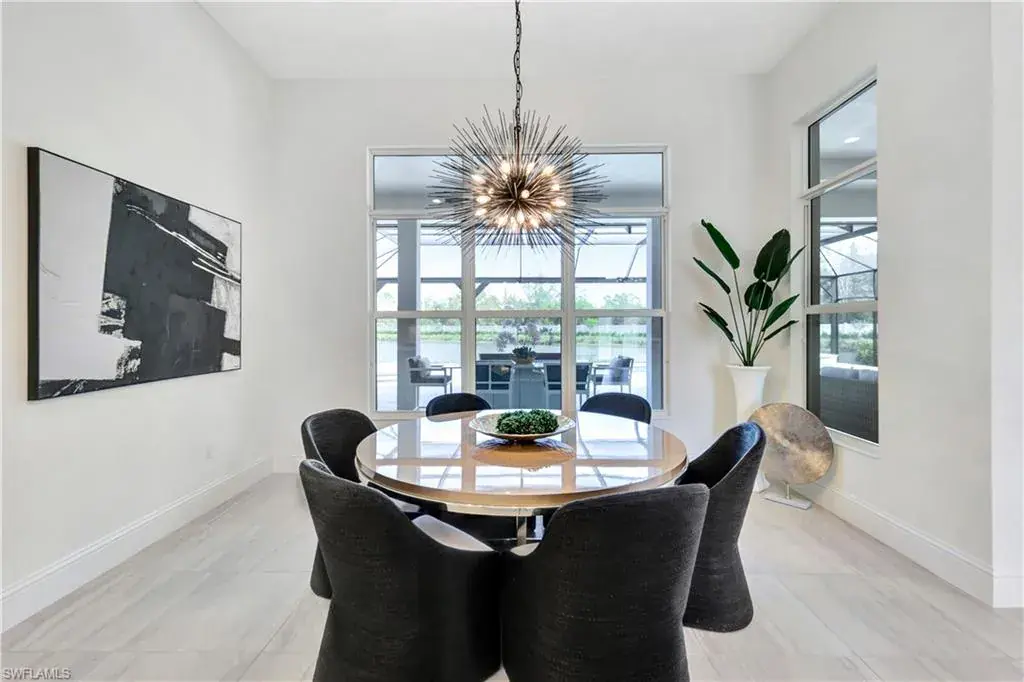Indulge in modern luxury at this exquisite Covington III Model by Stock Luxury Homes. This designer decorated home in the prestigious Isles of Collier Preserve has breathtaking lakefront views and situated on an expansive lot. There is over $400k in after market upgrades and furniture in this meticulously designed residence that seamlessly blends upscale sophistication with Florida’s natural beauty. The open-concept floor plan invites you to entertain in style. The great room features soaring coffered ceilings, custom built ins with quartz, grass cloth wall coverings, built in shelves and panoramic glass doors that bathe the interior in natural light. A chef’s dream, the gourmet kitchen boasts a gas cooktop, high-end stainless-steel appliances, custom cabinetry, marble backsplash and an expansive island perfect for gathering. The serene master suite offers a private retreat with French doors leading to the Lania and a spa-inspired bathroom featuring dual vanities, a soaking tub, a walk-in shower, and a spacious walk-in closet. Two additional bedrooms, each with private baths, provide guests with luxurious accommodations. Step outside to your personal paradise. The expansive lanai features a sparkling pool and spa with colored lights, a fully equipped outdoor kitchen, a panoramic screen, a built in high top table with Dekton countertop, and beautiful stucco and stainless steel modern fireplace creating the ultimate setting for alfresco dining and relaxation. Enjoy serene mornings and picturesque sunsets overlooking the tranquil lake and preserve view. The additional upgrades include; insulated garage with air conditioning and EV Plug In, Built in speakers in the great room and lania, trimmed out mirrors in all bathrooms, buried propane gas tank, toto commodes, and french glass doors in the den, John Richards chic great room Chandelier, Visual comfort Ceiling Fans, high end lighting fixtures throughout, high end furniture, custom art in the family room by a local Naples artist. This home is set within the sought-after Isles of Collier Preserve, a gated community offering unparalleled amenities, including a resort-style pool, lap pool, pickleball, tennis courts, a fitness center, and a private on-site restaurant. Explore the lush tropical surroundings with nature trails, bike paths, and a kayak launch. This home is conveniently located close to the western gate off Bayshore Drive and is only 4.1 miles from Old Naples’ 5th Ave South where you will find world-class dining, shopping, theater and the white sand beaches of Naples. Hamilton Yacht club is accessible through the back gates of Isles of Collier. High and Dry in an X zone, no flood insurance needed!