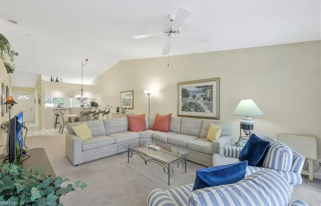 Cozy beautiful second story condo located within the desirable Falling Waters Community, a friendly and amenity rich neighborhood, located in South Naples and minutes away from 5th Avenue, Waterside Shops, Mercato and beaches. This property is being offered Turnkey Furnished for optimal ease. Falling Waters is a popular Naples community offering a 11,000 SF tropical pool which recently had a 2.1-million-dollar renovation. The community has a clubhouse, clay tennis courts, bocce courts, putting green, shuffleboard and horseshoes. There are many sidewalks and paver areas for walking. Peaceful and quite lanai space to entertain guests or have your coffee in the morning.