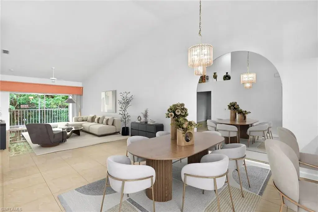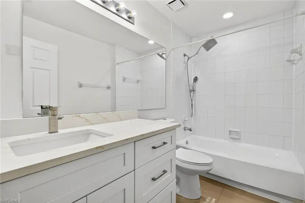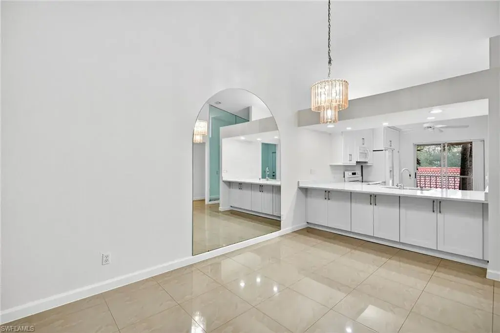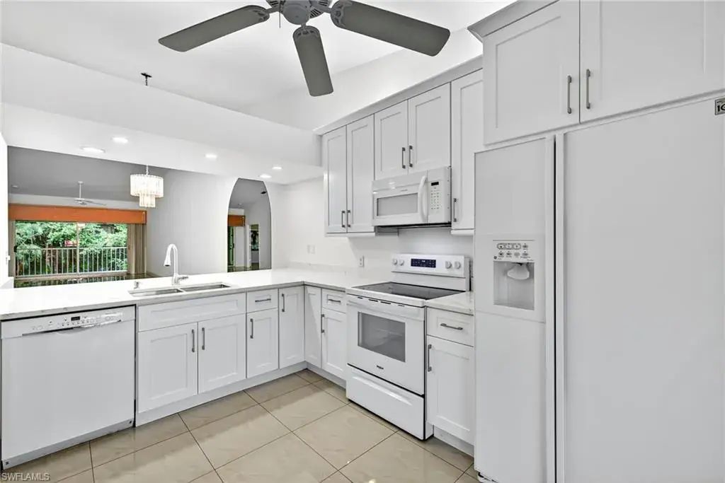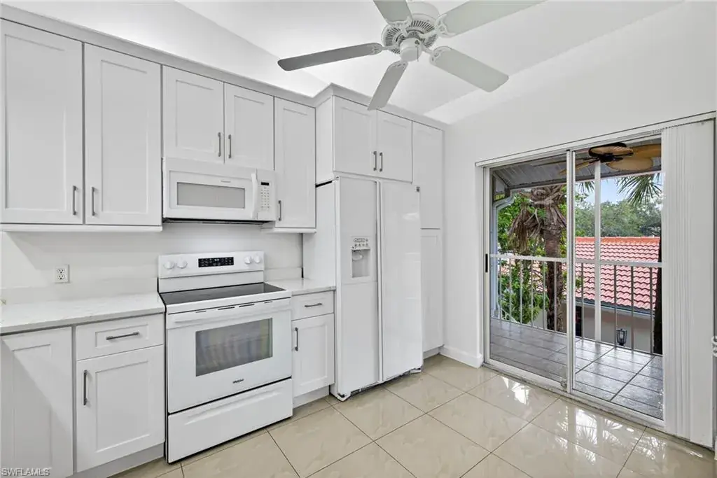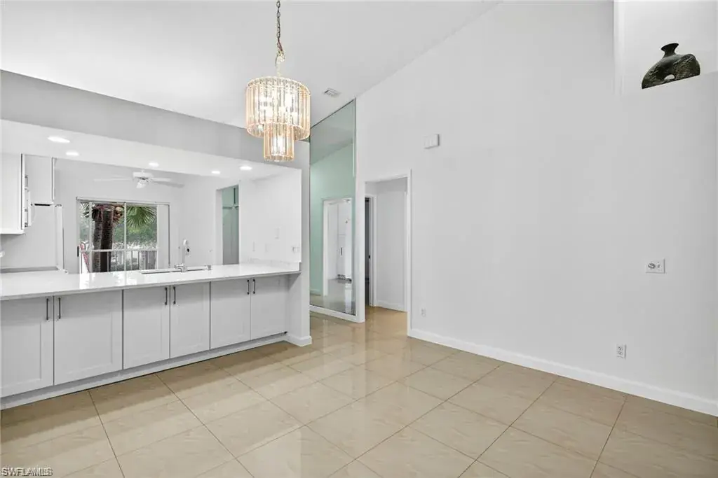 Beautifully Updated 3-Bedroom end unit condo in Desirable Falling Waters! Welcome to this beautifully updated second-floor end-unit condo located in the highly sought-after Falling Waters community — one of Naples’ most friendly and amenity-rich neighborhoods! This unit is just a few steps away from the amazing resort style amenities! Perfectly situated just minutes from 5th Avenue South, 3rd Street, Waterside Shops, Mercato, and Naples’ world-class beaches, this property combines luxury, comfort, and convenience. Step inside to find a bright, open concept living and dining area with soaring cathedral ceilings and newly tiled flooring throughout. The recently updated kitchen features quartz countertops, white wood shaker cabinetry (including added storage under the breakfast bar), a large deep kitchen sink, ample counter space, and space for a cozy seating area with access to the large enclosed lanai that extends across the front of the unit. Enjoy a large screened lanai overlooking a serene waterfall feature and lush landscaping, perfect for relaxing or entertaining- plus a second very large screened lanai at the entry with access from the kitchen to enjoy your morning coffee. The condo also includes three generous size bedrooms, two fully updated bathrooms, and an updated laundry room with new shaker cabinets for added storage. Additional highlights include a covered carport with a private storage closet, and ample guest parking nearby. Cascading waterfalls and lush tropical landscaping surround your new home, creating a peaceful, resort-like atmosphere- where every day feels like a vacation. This condo is move-in ready—perfect for use as a full-time residence, seasonal retreat, or great investment opportunity (ALLOWING UP TO 12 LEASES PER YEAR). Residents of Falling Waters enjoy access to exceptional amenities designed to enhance your lifestyle, that are within walking distance to the unit, including: A magnificent 11,000 sq. ft. resort-style saltwater pool with waterfalls and an expansive sun deck (recently renovated with a $2.1 million renovation), a welcoming clubhouse with social activities and community events, Clay tennis courts, bocce ball, shuffleboard, and a putting green, beautiful sidewalks and paver walking paths for walking throughout the lushly landscaped community. This home truly embodies the best of Naples living — relaxation, recreation, and resort-style comfort just minutes from everything that makes Naples famous.