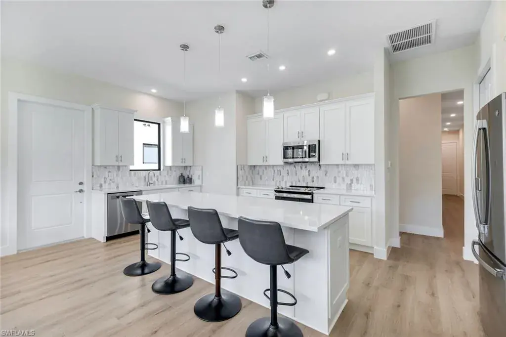 JASPER FLATS – NEW CONSTRUCTION IN NAPLES, MOVE IN TODAY!! Attached Villas at Jasper Flats: The Wyoming floor plan features 1350 sq. ft. under air and superior standard fittings and finishes including: CBS construction, Quartz countertops throughout, solid wood Shaker style cabinetry, Moen and Kohler plumbing fixtures, stainless steel kitchen appliances and tankless hot water heaters, luxury vinyl plank flooring, frameless tempered glass shower enclosures are included and all closets feature wood ventilated shelving. Impact glass windows and slider doors standard throughout. Jasper Flats is a boutique community with a great South Naples location, 10 minutes from downtown Naples and the beaches, close to Bayshore Arts District/Celebration Park, convenient to I-75! PHOTOS ARE OF THE FURNIASHED MODEL AND THE COMMUNITY. THIS UNIT IS OFFERRED UNFURNISHED,