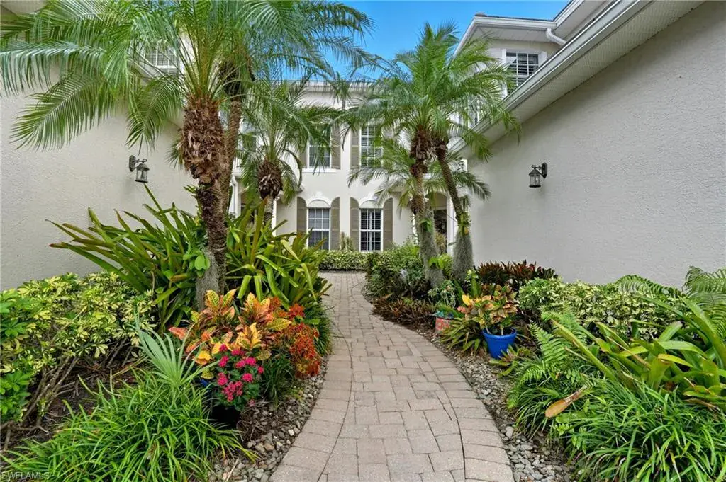 Experience the epitome of Naples living at Naples Lakes Country Club—home to the renowned Arnold Palmer Signature bundled golf course. This impeccably maintained residence spans 2,063 square feet of thoughtfully designed living space, offering two bedrooms plus a den and two full baths.The open-concept floor plan is anchored by an extended quartz-topped kitchen island and enhanced by refined finishes throughout—plantation shutters, crown molding, a frameless shower in the primary suite, and a newly refreshed guest bath featuring a quartz vanity, designer backsplash, updated lighting, and fresh paint. A stunning great room and formal dining area flow seamlessly to the screened lanai, a tranquil retreat showcasing serene southeast views of the 13th hole and lush preserve. Outfitted with elegant tile flooring and power storm protection, this inviting space is ideal for both effortless entertaining and quiet relaxation in true Naples style.The private owner’s suite opens directly to the lanai and features a custom walk-in closet and a spa-inspired bath with dual vanities, soaking tub, and walk-in shower. A versatile den with double-door entry serves beautifully as a home office or third bedroom, while the spacious guest suite offers comfort and privacy near the newly updated bath. Additional highlights include an attached two-car garage with epoxy flooring, a paver driveway and walkway, and beautifully manicured surroundings. As a resident of Naples Lakes, you’ll enjoy an extraordinary lifestyle with bundled golf privileges on the celebrated Arnold Palmer Signature Course, along with world-class amenities—resort-style pool, state-of-the-art fitness center, tennis, bocce,  dining venues, all just minutes from 5th Avenue South, pristine beaches, and RSW Airport.