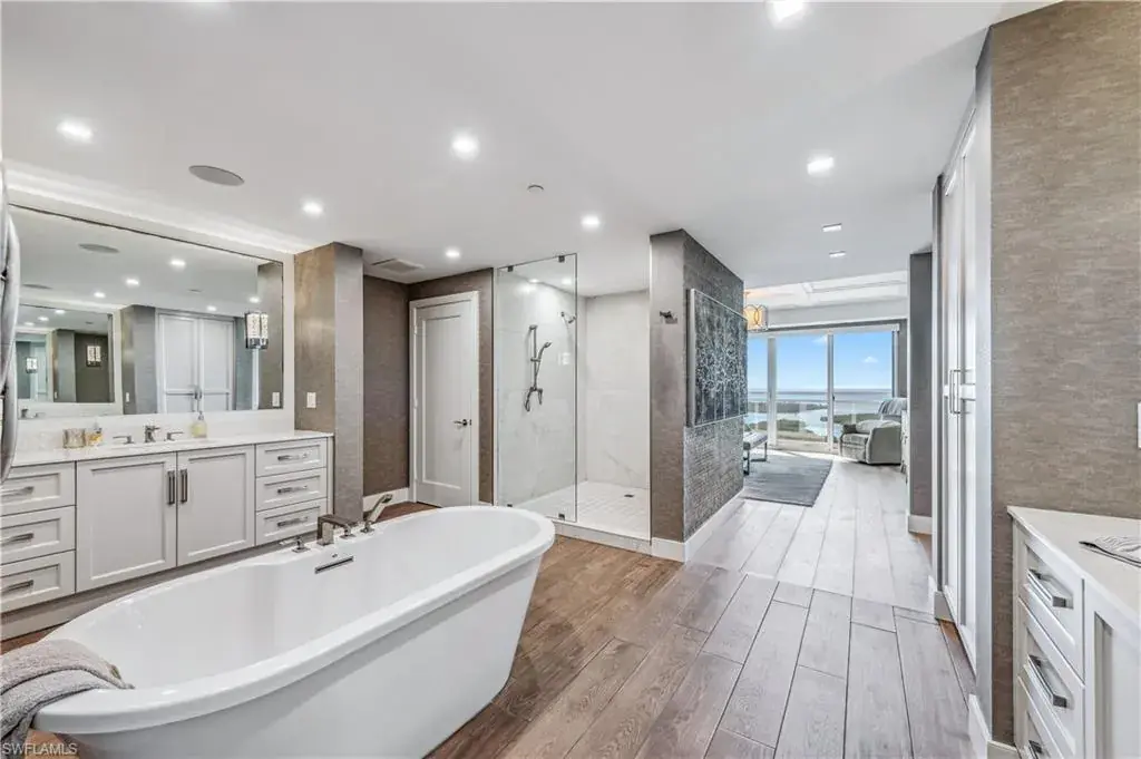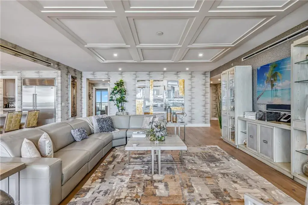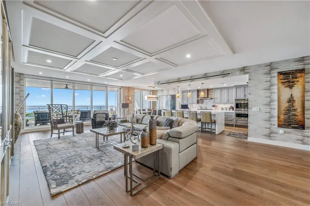 Step into unparalleled luxury with this stunning 4-bedroom, 4 bath residence in the coveted Kalea Bay. Positioned high on the 20th floor, this unit offers breathtaking views of the Gulf of Mexico, the bay, and endless sunsets from one of the largest lanais in Tower 100. Not only is the view incredible but this unit comes with TWO deeded parking spots in the upstairs garage. Designed to impress, showcasing exquisite custom millwork, elegant designer wall coverings, and impeccable finishes throughout. The gourmet kitchen is a chef’s dream, featuring Wolf and Sub-Zero appliances, a large waterfall island, and a spacious butler’s pantry. Open-concept living and dining areas flow seamlessly for entertaining, while the expansive lanai provides the perfect indoor-outdoor lifestyle. The primary suite offers a private retreat with spa-like amenities, while the three additional bedrooms provide comfort and privacy for guests or family. Located in Naples’ premier resort community, Kalea Bay offers five-star amenities, including rooftop and waterfront pools, a state-of-the-art