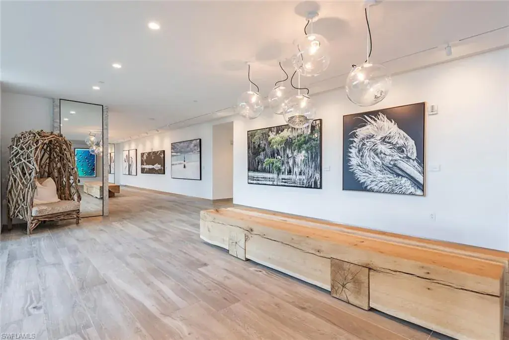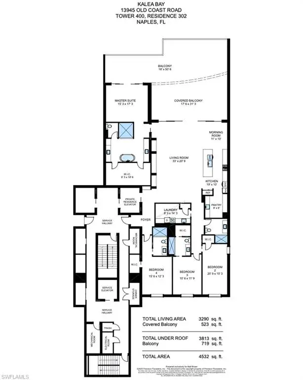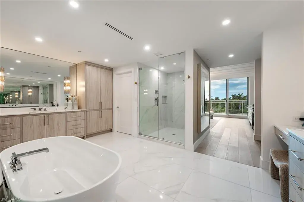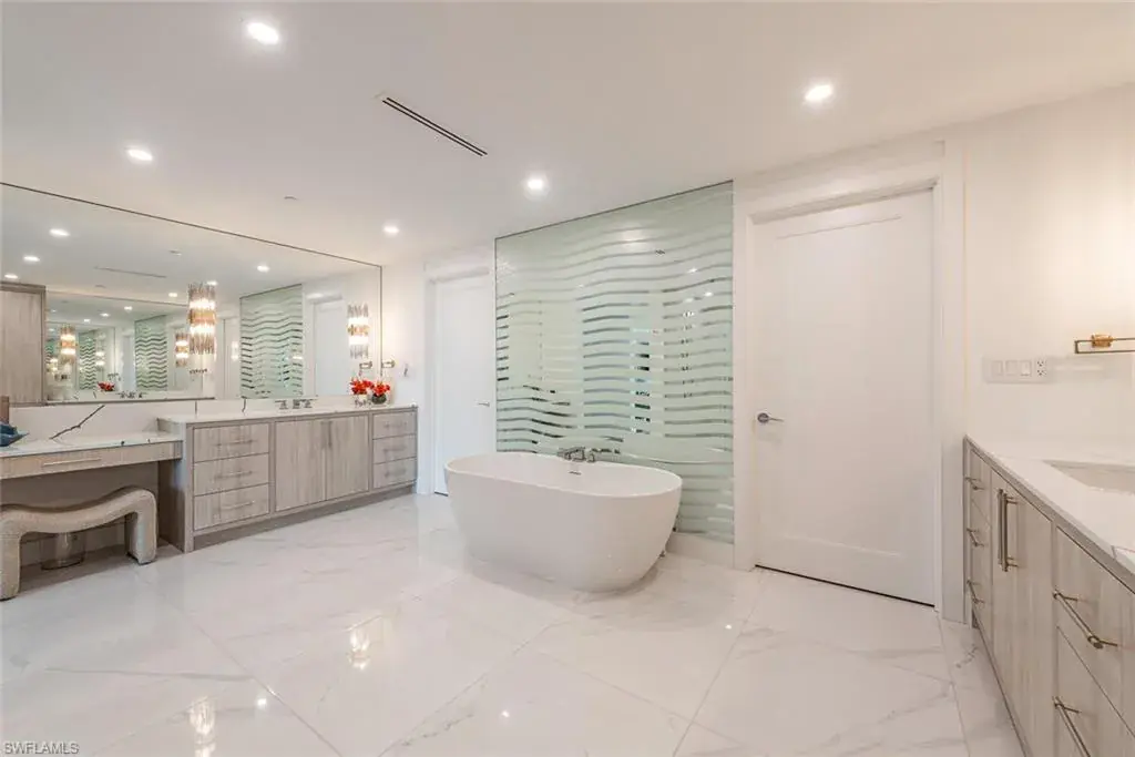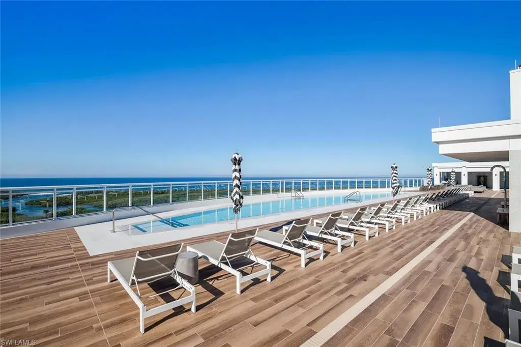Welcome home to unit 302 in Tower 400, recently completed and beautifully finished, this Kalea Bay residence provides all the conveniences of living in a brand-new luxury condominium and a 5-star amenities center, a combination that has made Kalea Bay one of the most successful and desirable communities in Naples. This residence features a wall of sliding glass doors leading to a unique expansive extended terrace totaling 1,242 square feet including 523 square feet of covered outdoor living plus 719 square feet of open balcony area. The interior of the unit lives like a single-family home with 3,290 square feet of living space including 4 bedrooms and 4 full bathrooms including spectacular primary suite with a massive custom closet. Highlights include stunning wall decor throughout plus impressive built-in units in the great room and the media room including back-lit wall panels that can be dimmed for movies. The lighting fixtures are fabulous and eye catching as you enter the home and accentuate the finishes including wide plank oak wood floors, custom cabinetry and designer touches throughout the home. The open gourmet kitchen features a Wolf gas cooktop and wall ovens, Sub-Zero refrigerator and full height wine cooler and a butler’s pantry with ample storage. The building features a rooftop terrace with a pool and spectacular sweeping views, an open-air fitness center, BBQ grills and an open-air lounge all ideal spots to take in stunning sunsets. Tower 400 is located directly across from the Club at Kalea Bay and provides easy access to 80,000 square feet of exceptional modern amenities, including a wellness center with a state-of-the art gym, spin room, Pilates, spa services plus 3 resort style pools, 2 open-air poolside bars, fine and casual dining options, outdoor fire pits, a kids’ game room, 8 pickleball and 4 tennis courts, guest cottages and more. Kalea Bay Residents also have the option to join the annual Beach Card Program, based on availability, which grants access to the private Beach Club at Moraya Bay at Vanderbilt Beach for dining both indoor and outdoor as well as beach service including food, beverages, chairs and umbrellas.