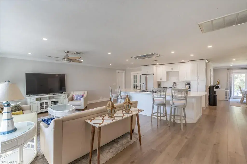 JUST REDUCED $ 5,000—-LOWEST PRICE SINGLE FAMILY HOME IN KINGS-LAKE- A CHEF’S DREAM KITCHEN. MOTIVATED SELLER – BRING ALL OFFERS—-A MUST SEE !!!Welcome to 2237 Kings Lake Blvd. This impeccably renovated and reimagined 3 bedroom + den, 2 bath home in the desirable Kings Lake community is a true masterpiece of modern design and functionality. Roof ( 2006–we have a 4 point Inspection that show remaining life is 6 years ). We have a wind mitigation all uploaded in supplements. Hot Water Heater -2015, Washer & Dryer – NEW .From the moment you step inside passed the tiled entryway waterfall, you’ll be captivated by the open-concept layout created by removing walls around the kitchen to seamlessly blend the kitchen and living areas into a spacious, inviting haven. Complete Irrigation system and new Sod laid along with mulch and roof soft-washed. The kitchen has been completely transformed to professional chef-level standards, boasting brand-new cabinetry, stunning countertops, and an extended island with ample counter space for both cooking and entertaining. 2 A/C Units for cooling pleasure also High-end GE Café series appliances ( Dishwasher, Refrigerator ), including a gas stove/oven powered by an outdoor 80-gallon gas tank (one of the few Kings Lake homes with gas), make this a culinary enthusiast’s dream. To preserve the open aesthetic, an upgraded recessed vent hood above the stove ensures an unobstructed view of this remarkable space while cooking and entertaining family and friends. The home’s interior shines with new framing around windows and doors and luxurious vinyl plank flooring throughout, exuding style and durability. Both bathrooms have been meticulously modernized— the primary bathroom features elegant floor-to-wall tiling, a sleek door-less shower, and a new vanity with dual sinks, while the secondary bathroom delights with character-filled purple patterned tiles, a new vanity, and upgraded fixtures. Additional features include a two-car garage with epoxy-finished garage floor, a new water heater, new Washer & Dryer and fresh paint inside and out, all contributing to the property’s turnkey appeal. The home is situated on a large .25 acre lot with a huge backyard, plenty of room to add a large pool or lanai. Located in the tranquil Kings Lake neighborhood non-gated with low association fees of $434/year, this home offers a family-friendly Florida lifestyle. The neighborhood features tennis and pickleball courts as well as access to scenic walking paths around the lake and a short drive to the vibrant downtown Naples scene. Residents enjoy close proximity to renowned dining, boutique shopping, pristine beaches, and the best of what Naples has to offer. Kings Lake has a flexible rental policy with a 30 day minimum and up to 12 rentals per year. Great for Investors ! Welcome Home to Kings Lake !
