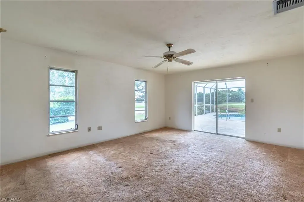 Welcome to 2353 Abbey Ct, a spacious single family pool home located on a quiet cul-de-sac with no through traffic in the highly sought-after Kings Lake community of Naples. This 3-bedroom, 2-bath single-family home offers an expansive 2,300 square feet of living space with an oversized two car garage situated on a generous .44-acre pie-shaped lot. The thoughtful layout includes large rooms and bedrooms throughout, providing a solid foundation for those looking to renovate or customize their dream home.