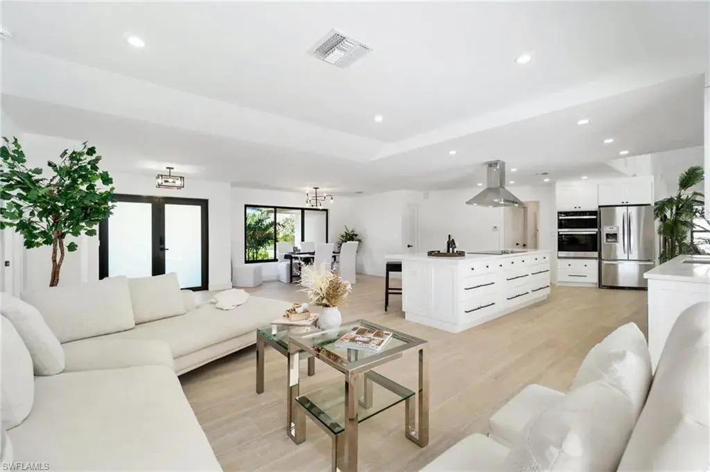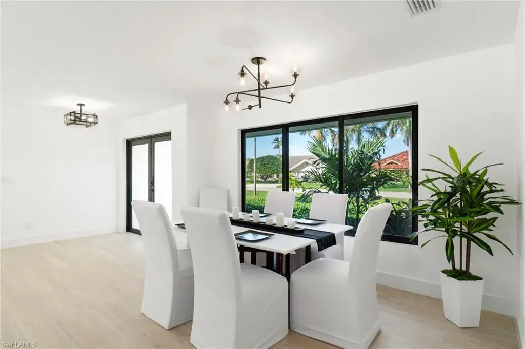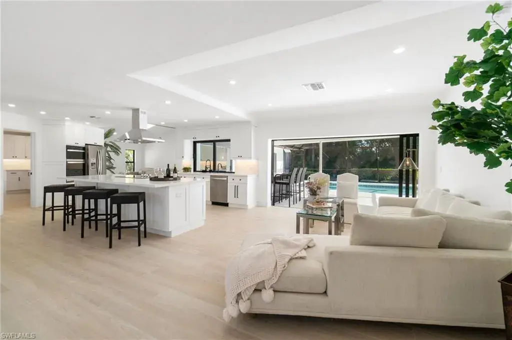 Exquisite luxury living awaits you. Nestled in Kings Lake, one of the most coveted neighborhoods in Naples, this stunning estate offers an unparalleled blend of elegance, comfort, and modern sophistication. Situated on an oversized lot, this home is fully remodeled with the utmost attention to detail and is truly ready to be enjoyed. Step into the grand entryway where the home is bathed in an abundance of natural light, thanks to expansive hurricane rated windows and sliding doors that offer breathtaking views of your private pool and surrounding landscape. The chef-inspired gourmet kitchen features slow-close, white shaker-style cabinetry and quartz countertops with matching quartz backsplash and brand-new stainless-steel appliances. The lavish spa-inspired bathrooms have floor to ceiling tile and new plumbing. With over 2,200 square feet of living space, the home boasts 2 spacious king-sized bedrooms and one queen-size overlooking the pool. The open concept living and dining areas are perfect for entertaining, featuring spaces that seamlessly connect the indoors to the beautiful outdoor oasis. Enjoy your own private resort with a sparkling underground pool, expansive patio, and spacious yard, ideal for relaxing or hosting intimate gatherings. Located just 3.7 miles from 5th Ave, a reputable world-class dining, shopping, and cultural attraction.