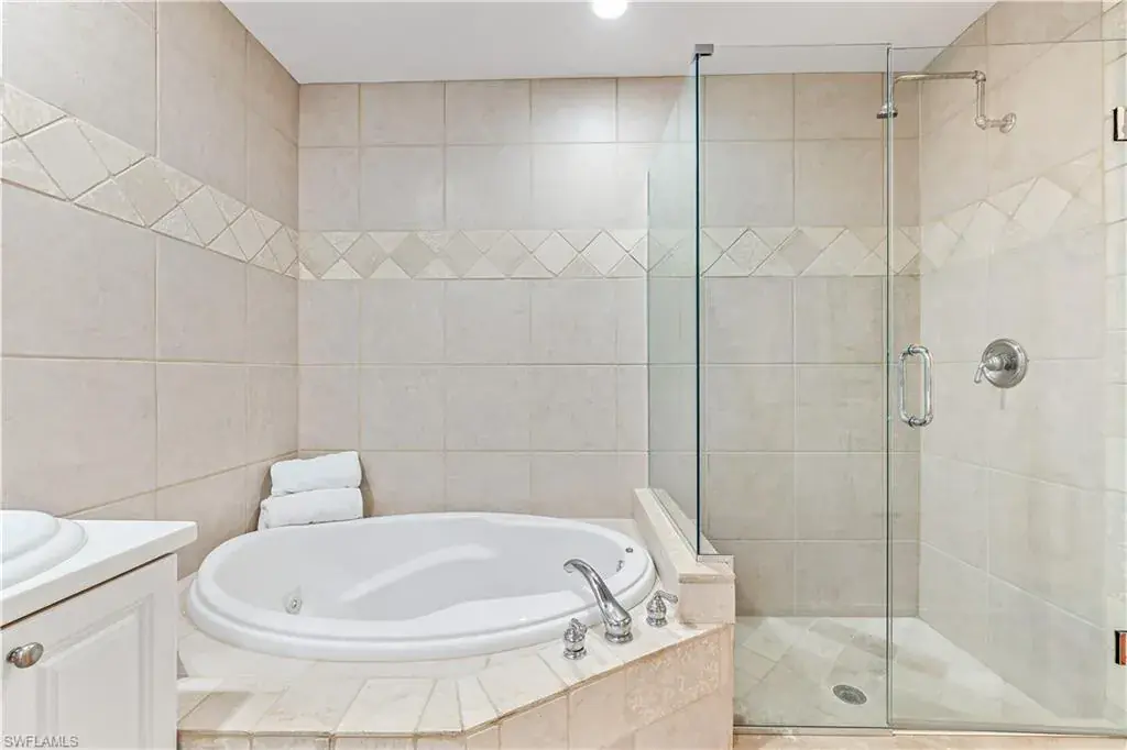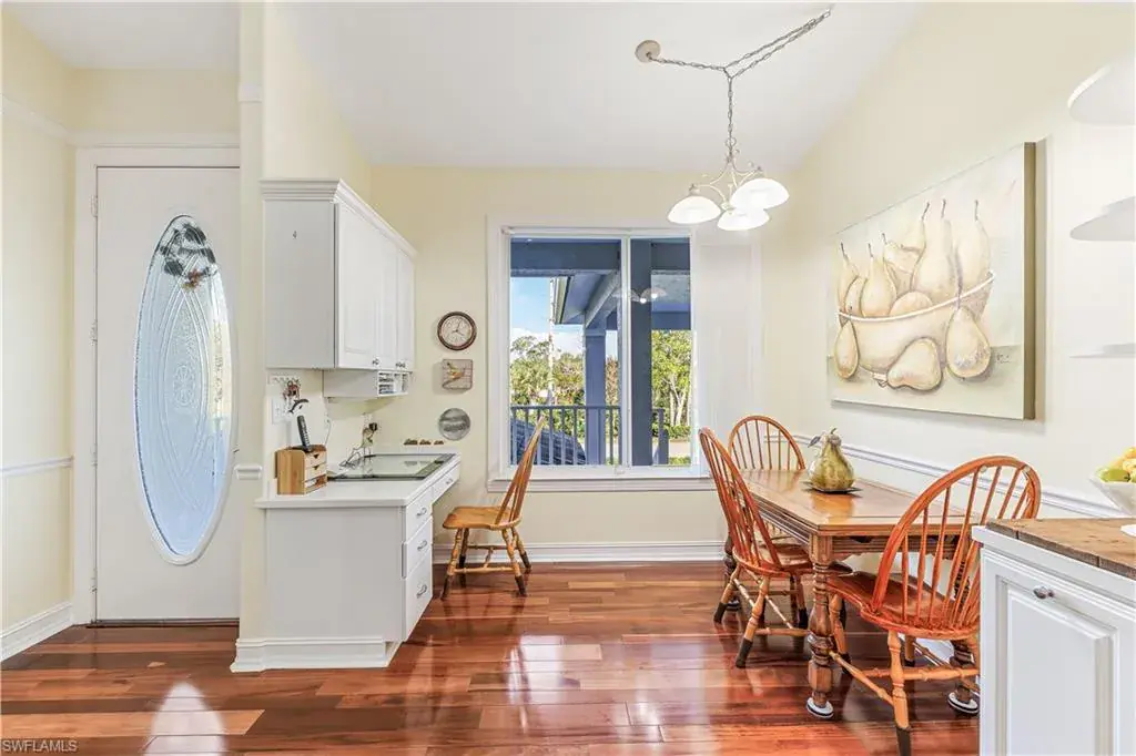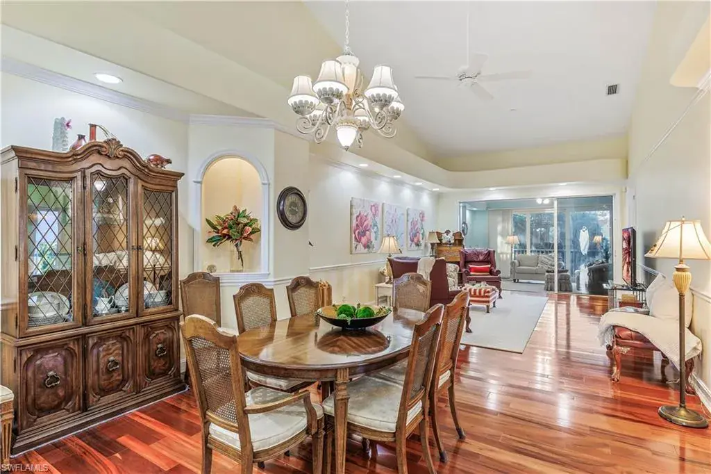From the moment you enter this intimate complex you feel like you are on vacation. This upscale 2nd floor condo has the feeling of a Villa featuring 15′ ceilings, 8′ doors, and an over-sized enclosed lanai. Original sliders in the unit are still in place allowing you to close and enjoy the Florida room as a separate living space or open the hurricane impact sliders and enjoy the Florida breezes. Desired western exposure for sunsets. Sellers have installed Brazilian hardwood flooring throughout the main living areas…absolutely beautiful. Other upgrades include new HVAC system with new duct work, pull out drawers in the kitchen & pantry, a built in beverage center, and custom cabinets in the laundry room. The kitchen has a built-in desk, breakfast nook, and breakfast bar opening up to spacious living area. Enjoy entertaining on your lanai or sitting by the pool shared by only 3 other condos. Designed with distinction, this 3 bedroom / or 2BR Den, 2 bath, end unit has 2,092 sq. ft. of living space. The oversized 2-car garage affords additional storage. The open floor plan features the kitchen opening up to both the dining room and large living area. You are part of the Kings Lakes association which has sidewalks throughout the community, tennis and pickleball courts. Minutes to the Kings Lake shopping center…ride or walk to restaurants, Starbucks, Publix and more. Beautiful lake with 1.25 mile path allowing for bikes and walkers/joggers. Location is prime, five miles to the restaurants and shopping of Olde Naples and the pristine gulf beaches. Start enjoying the Naples lifestyle now.