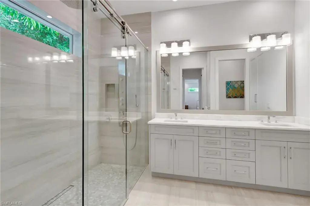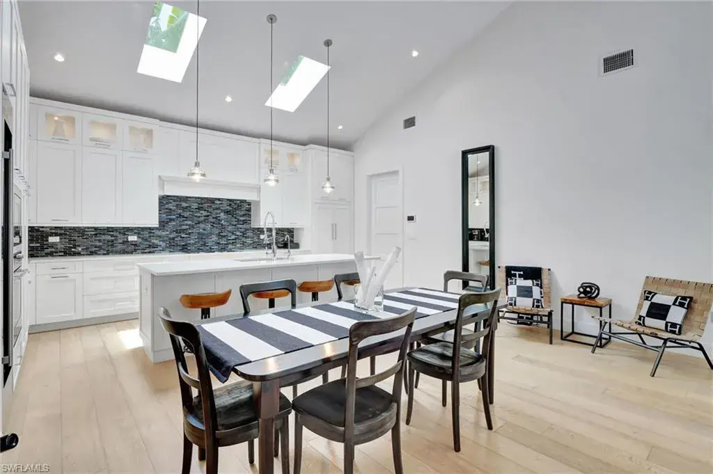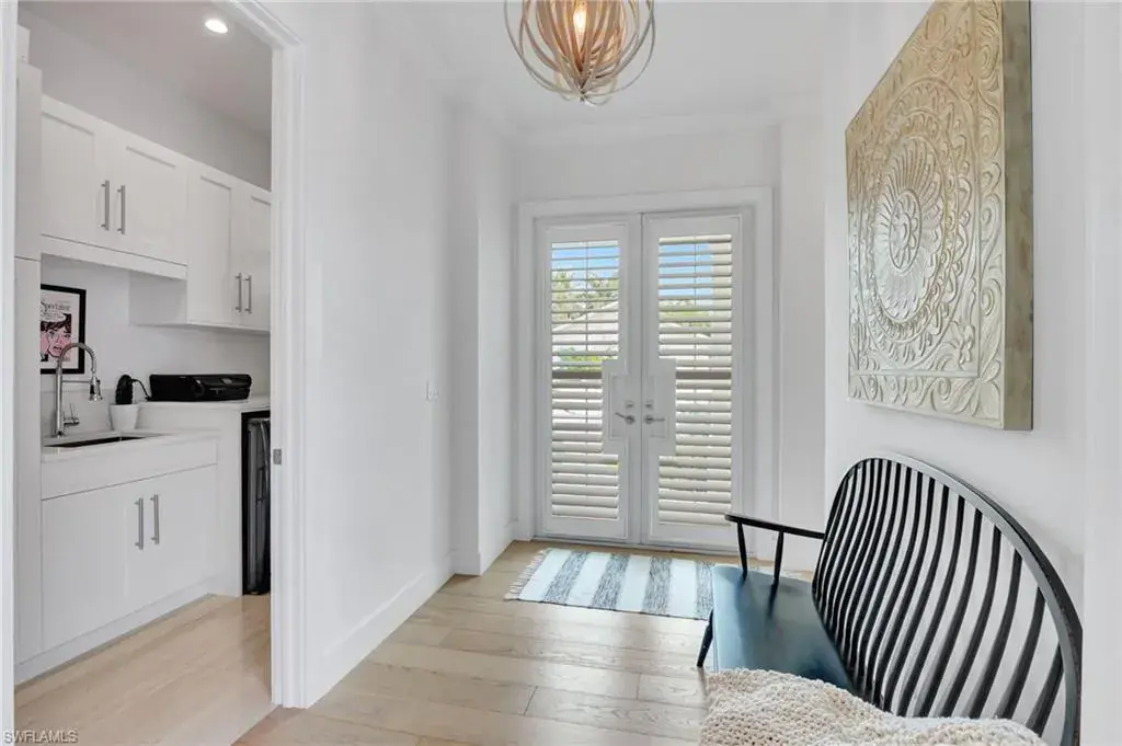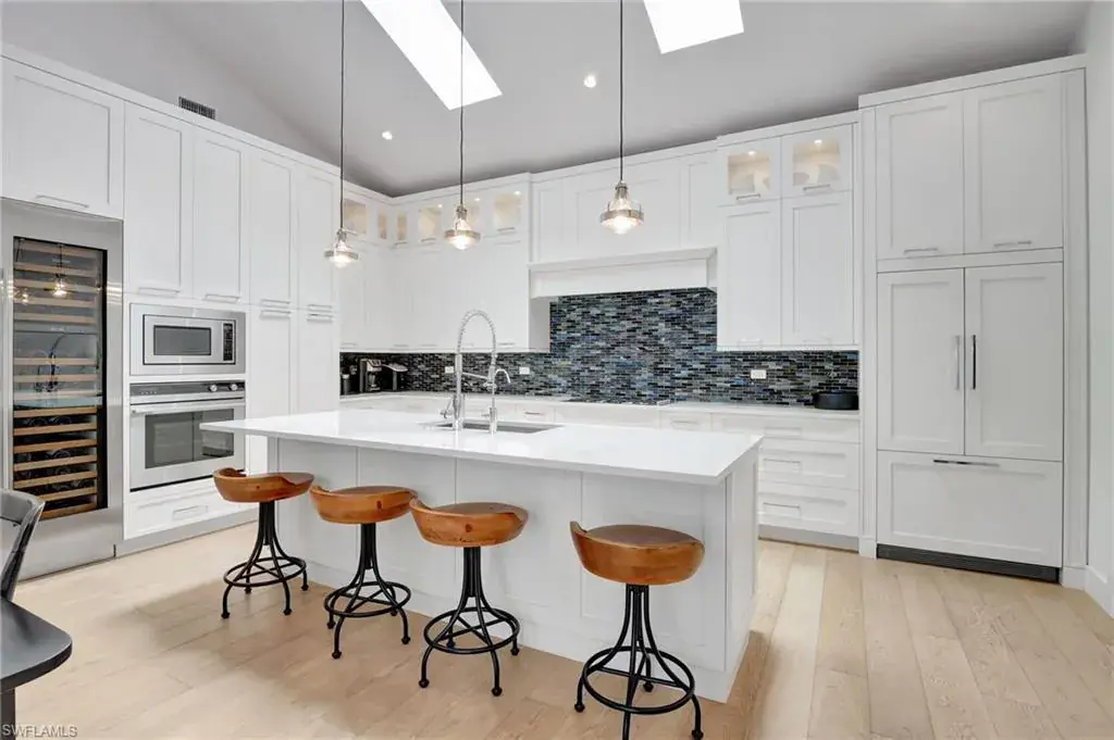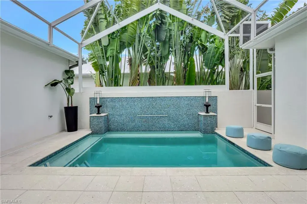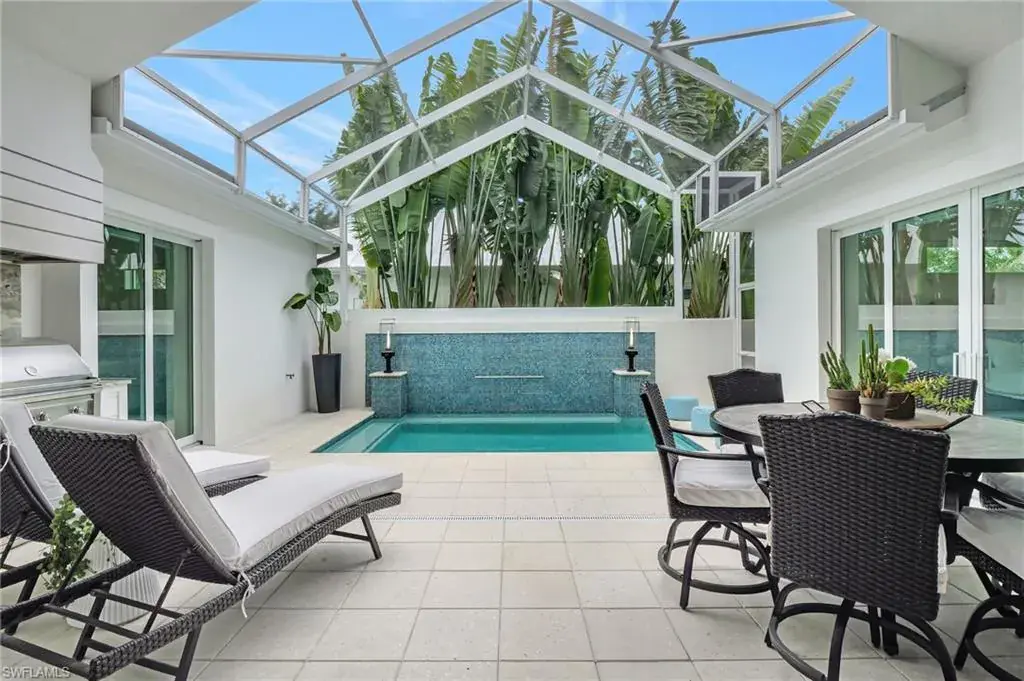 Stunning, contemporary open concept home with three full en-suite bedrooms. Great room with 15-foot ceilngs, skylights, and a kitchen containing almost any upgrade one could dream of for gourmet dining and entertaining – including a large Subzero wine cooler, and a Fisher Paykel 5-burner cooktop gas range, Kinetico reverse osmosis water system and water softener. Operate your blinds with ease with the Hunter Douglas motorized blinds throughout the home: use the one touch remote or an app that you simply download to your mobile device. Open a wall of glass sliders to enjoy your outside living room. Equipped with a screened in lanai, TV, heated pool with auto filler and LED lighting, modern waterfall and two stunning fire features. This spacious outdoor entertainment area includes built-in summer kitchen with top-of-the-line Sedona Lynx grill and outside refrigerator. Landscape lighting surrounds the home, enlarged 500 gallon buried propane tank, 22KW backup generator, monitored alarm system with five hardwired outside cameras, ring doorbell, and garage camera. Two separate air conditioning units that are under semi-annual maintenance contracts. One for the entire home and a mini split for the third very private bedroom and bath, perfect for your out of town guests. Hurricane proof windows and the highest construction standards were used throughout. Nearly maintenance free living as the HOA handles weekly exterior lawn and pool maintenace. Extremely low HOA fee cannot be matched at any other single-family home in the area. The well-known Naples Bay Club is exclusively offering a 50 percent discount on membership to the purchaser of this home with a real estate transfer. The facililty is world class with every imaginable amenity such as work-out facility, elegant locker rooms with steam room, spa services, restaurants, three pools, two hot tubs, tennis, discounts on boat rentals, golf reciprocals and social events year-round for the members. Hop on your included street legal golf cart, turn up the volume of the high quality stereo and be at Naples Bay Club or the beautiful Naples Pier in minutes. This is a must-see house that is steps from the famous 5th Avenue and Third Street South.