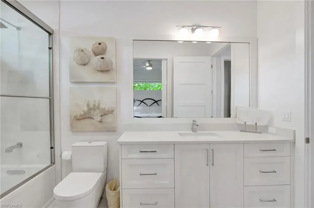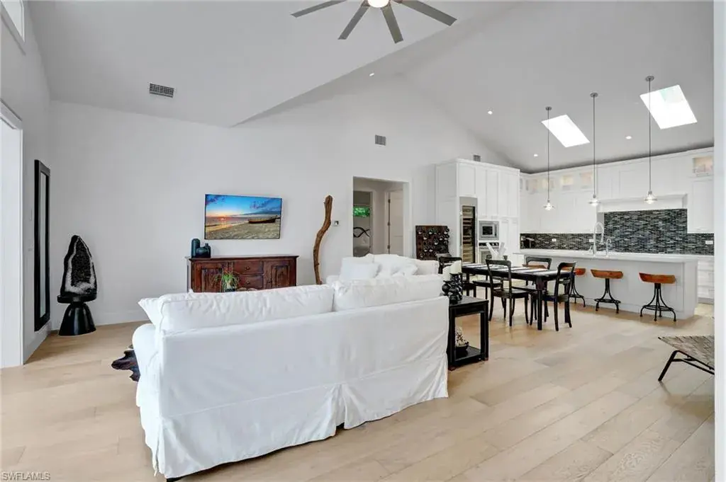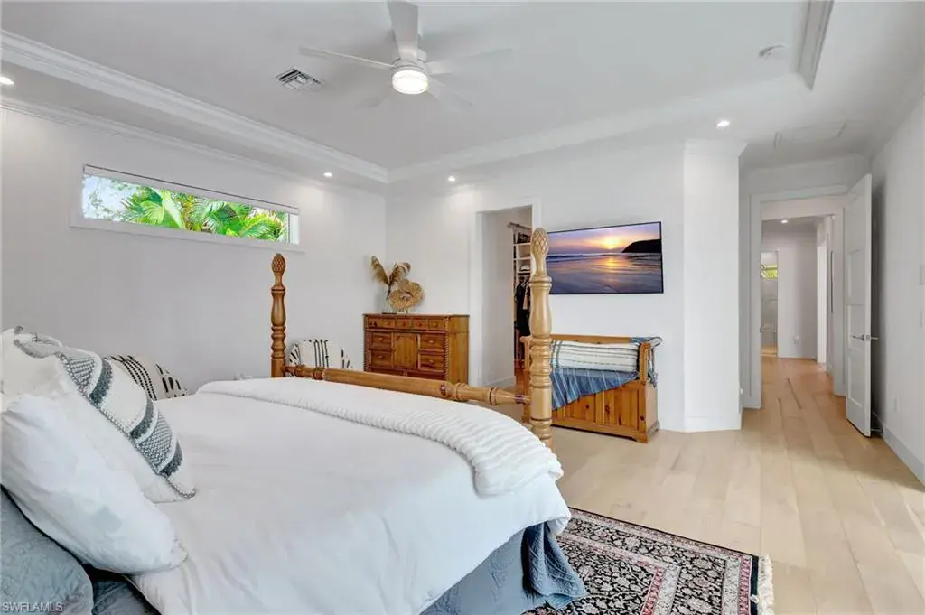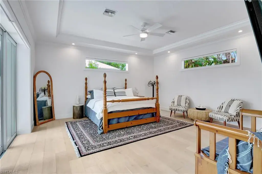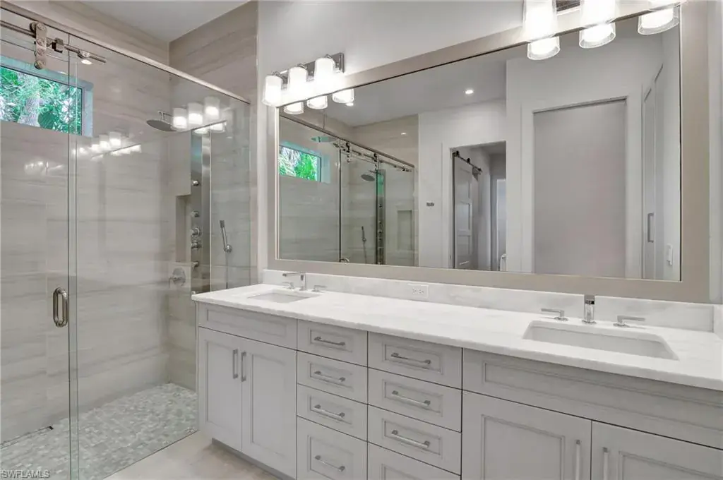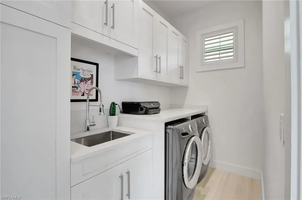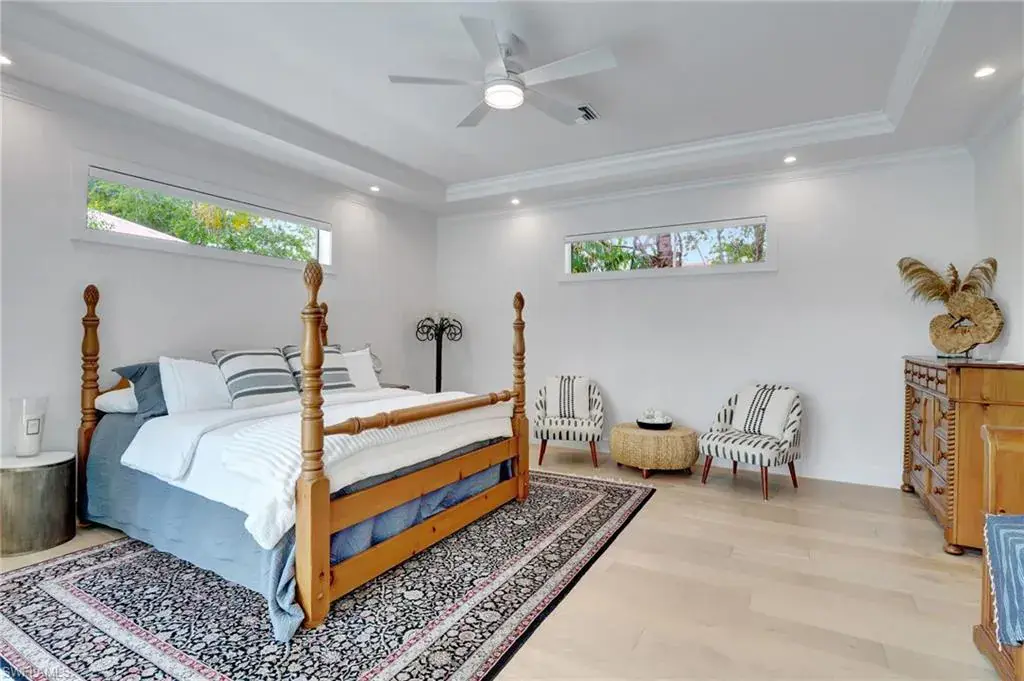 Stunning, contemporary open concept home with three full en-suite bedrooms. Great room with 15-foot ceilngs, skylights, and a kitchen containing almost any upgrade one could dream of for gourmet dining and entertaining – including a large Subzero wine cooler, and a Fisher Paykel 5-burner cooktop gas range, Kinetico reverse osmosis water system and water softener. Operate your blinds with ease with the Hunter Douglas motorized blinds throughout the home: use the one touch remote or an app that you simply download to your mobile device. Open a wall of glass sliders to enjoy your outside living room. Equipped with a screened in lanai, TV, heated pool with auto filler and LED lighting, modern waterfall and two stunning fire features. This spacious outdoor entertainment area includes built-in summer kitchen with top-of-the-line Sedona Lynx grill and outside refrigerator. Landscape lighting surrounds the home, enlarged 500 gallon buried propane tank, 22KW backup generator, monitored alarm system with five hardwired outside cameras, ring doorbell, and garage camera. Two separate air conditioning units that are under semi-annual maintenance contracts. One for the entire home and a mini split for the third very private bedroom and bath, perfect for your out of town guests. Hurricane proof windows and the highest construction standards were used throughout. Nearly maintenance free living as the HOA handles weekly exterior lawn and pool maintenace. Extremely low HOA fee cannot be matched at any other single-family home in the area. The well-known Naples Bay Club is exclusively offering a 50 percent discount on membership to the purchaser of this home with a real estate transfer. The facililty is world class with every imaginable amenity such as work-out facility, elegant locker rooms with steam room, spa services, restaurants, three pools, two hot tubs, tennis, discounts on boat rentals, golf reciprocals and social events year-round for the members. Hop on your included street legal golf cart, turn up the volume of the high quality stereo and be at Naples Bay Club or the beautiful Naples Pier in minutes. This is a must-see house that is steps from the famous 5th Avenue and Third Street South.