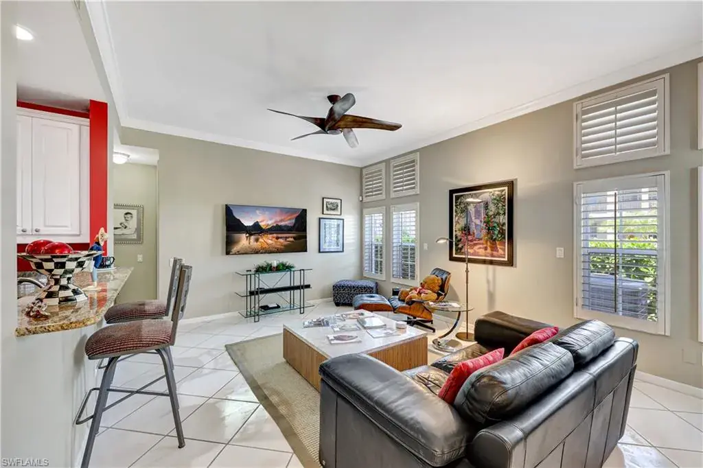 Rarely available!!First floor end unit with 2 car attached garage. Surrounded by lovely waterscape views with waterfalls. Interior has been immaculately maintained and updated. Interior features a bright and open floor plan, villa living charm with all the condo amenities. Steps to the L’ambiance clubhouse with pool, spa and close to the Pelican Bay fitness center with tennis and pickleball. Additional amenities include three miles of beach, two private beach pavilions, beachfront restaurants, canoeing, kayaking and miles of nature paths. Centrally located between Upscales Waterside Shops, restaurants and the Ritz Carlton Beach Resort. Enjoy the ultimate is Florida living.