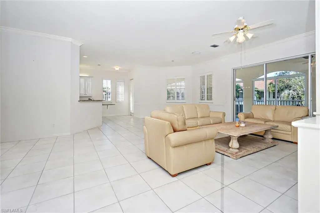 Light, Bright and open spacious floor-plan. Interior features include newer stainless appliances, neutral decor, chair lift, two primary suites and light tile flooring. Exterior features an oversized screened lanai overlooking a stream like water feature and attached 2 car garage.