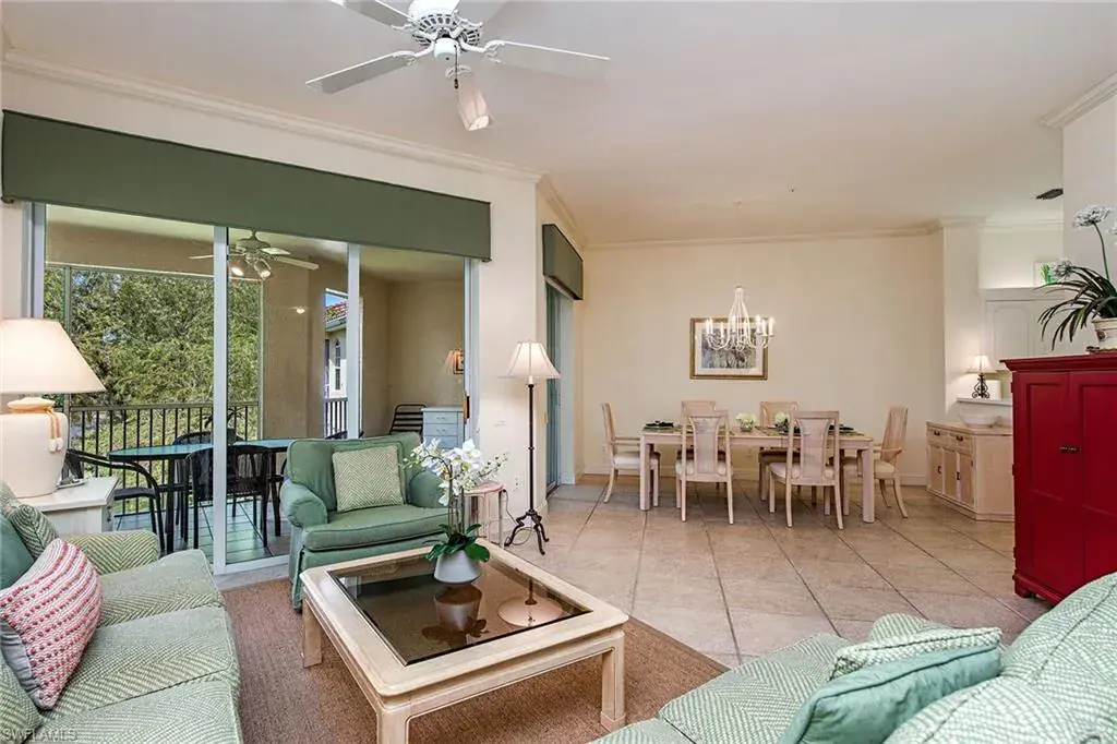 NO HURRICANE DAMAGE. Need a place to move into right away? This is furnished and ready to go. Fabulous water view from the lanai of this second-floor coach home in L’Ambiance. Featuring high ceilings, open floor plan, large screened lanai with a beautiful view, plantation shutters and large windows which add to the Florida charm. Offered turnkey furnished with the added convenience of an attached one-car garage and considerable privacy. Walking distance to Pelican Bay Community Center – home to the fitness center, spa and tennis pro shops, and Publix supermarket. Residents of L’Ambiance, a gated community, enjoy access to a private pool, spa and clubhouse with a social room and exercise room. Residents also have use of Pelican Bay’s beach access with 3 miles of private white sand beaches, two beachfront restaurants, a competitive tennis program, kayaking and miles of bike paths. L’ambiance is a pet-friendly community which allows for a large dog.