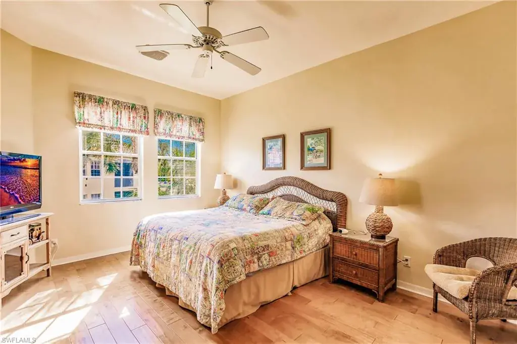 Coming in at just under 2000 sq. ft. this, well appointed End Unit offers a peaceful Lake and Aquascape View. This Rarely available, 3 Bedroom, 2 Bathroom home features, an Eat in Kitchen with Upgraded Kitchen Cabinetry, Granite countertops, Backsplash, Stainless Steel Appliances, a Kitchen Island and much more. The Open Floorplan with a Great Room, Dining area and sliding glass doors that pocket; extends the area for entertaining. Added features include Solid Wood Flooring in the Bedrooms, Tile throughout the rest of the unit, Laundry in Residence, and Newly installed electric shades for additional privacy. Parking no problem-this unit has an attached 1 car garage and as well as additional storage space. Residents of L’Ambiance enjoy the Community Pool, spa, Clubhouse and social room-all within the Elite Community of L’Ambiance in Pelican Bay. Enjoy the short walk to The Pelican Bay Community Center which touts a competitive tennis program, kayaking, pickleball and miles of bike paths. Our Residents enjoy Pelican Bay’s beach access with its 3 miles of private white sandy beaches, and two beachfront restaurants~ L’Ambiance’s a pet-friendly community that allows one dog of any size!