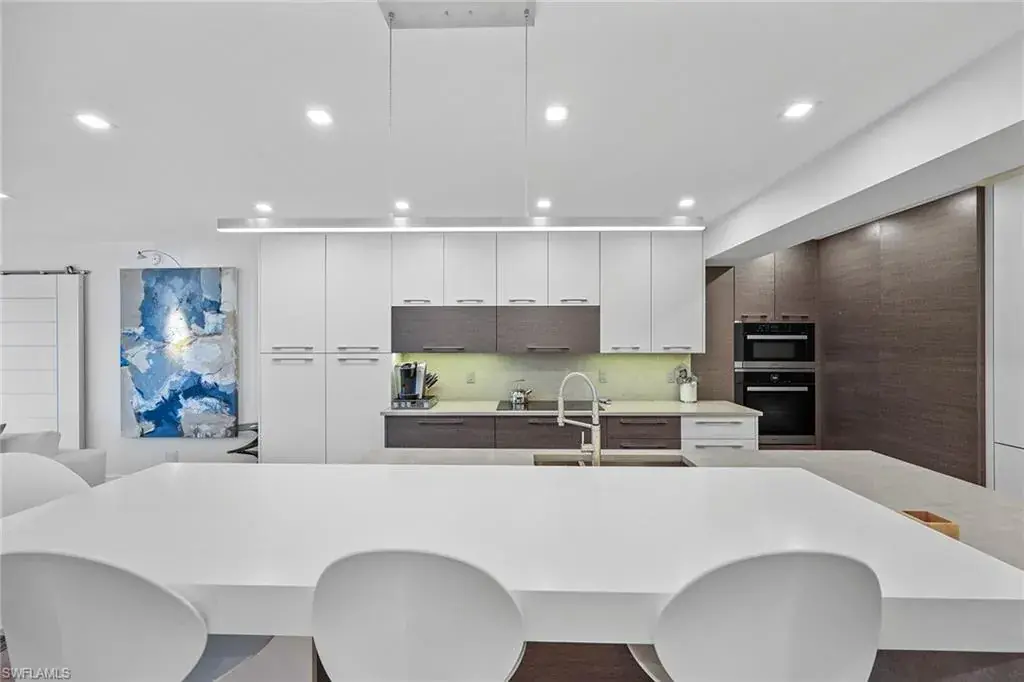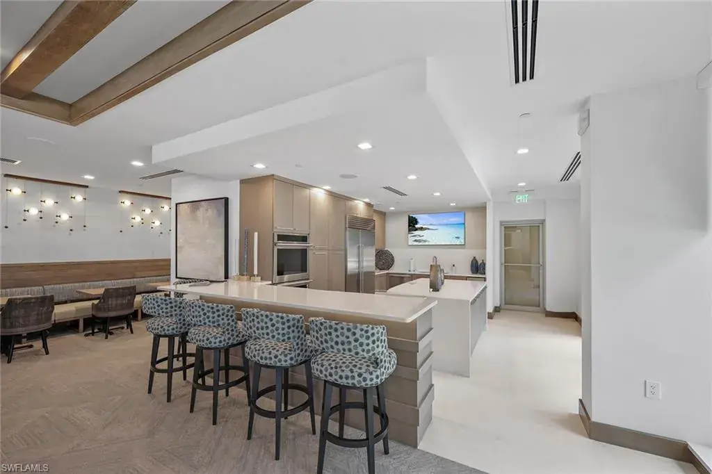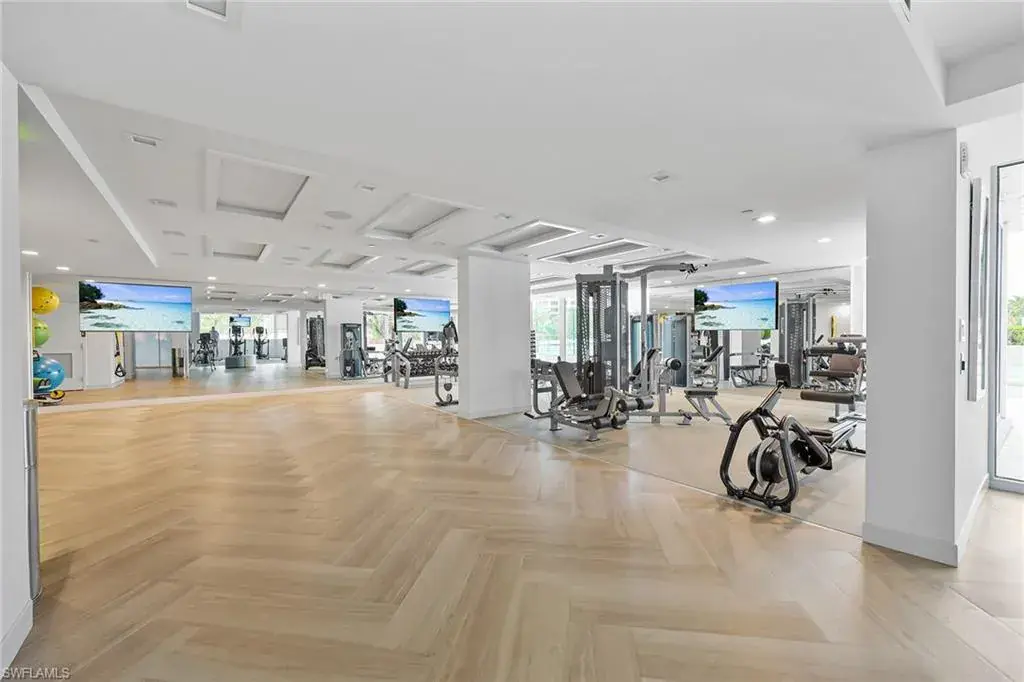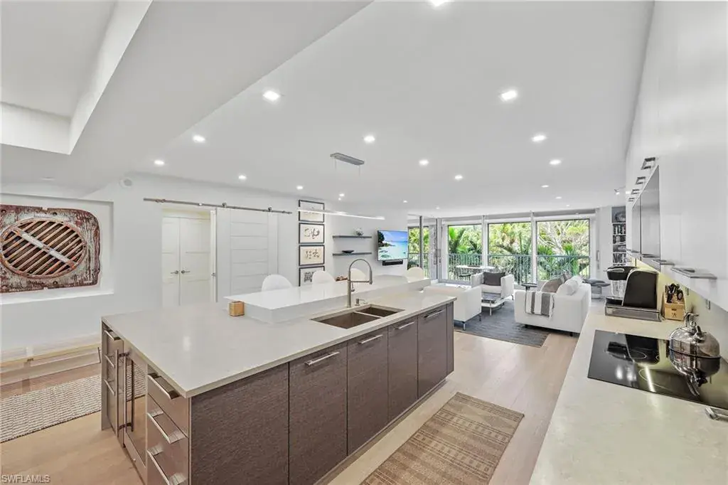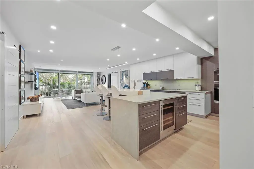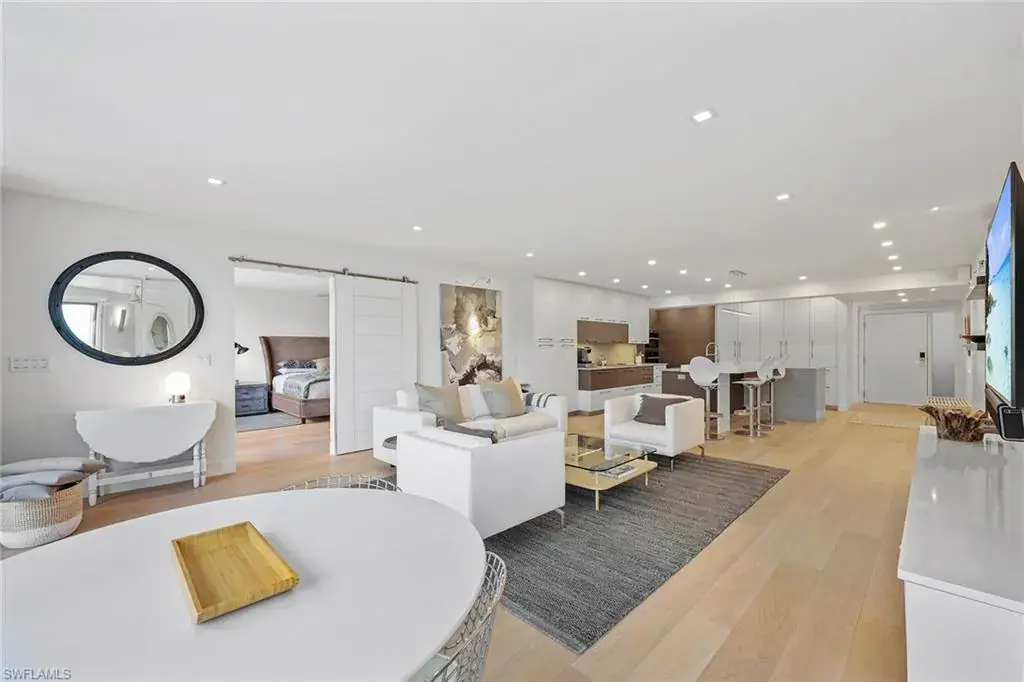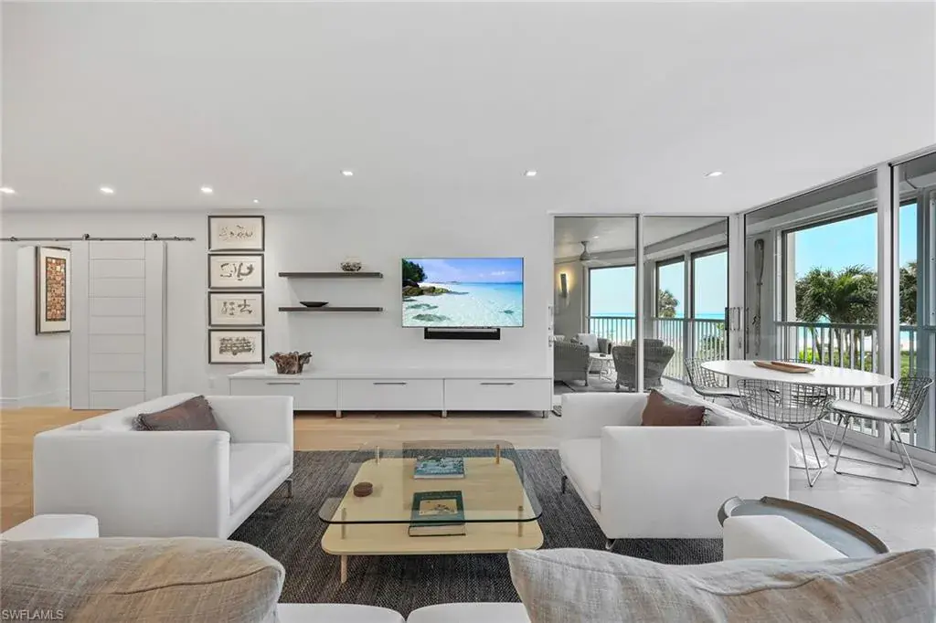 The perfect “Beach House” is La Mer #201 on Park Shore Beach! This tastefully renovated two-bedroom, two-bath residence has a bonus room that could be your office, a den, a walk-in pantry or a child’s bunkroom. The sophisticated and contemporary floor plan is open and airy and features split bedrooms with en-suite baths. It is equipped with many special touches including stunning wood floors and tile throughout, a gourmet kitchen with lots of light countertops and workspace, electric blinds and shutters. Conveniently located on the second floor with quick access to stairs, elevators and the beach right outside your door. The balcony has a charming view of the Gulf of Mexico that will make you want to get in a chair and spend the whole day right there enjoying the sites and sounds. This nice northwest exposure is perfect for alfresco dining and sunsets. The newly renovated amenities are beautiful, added to the 1.5-mile Park Shore Beach promenade and The Village on Venetian Bay shops and dining… it is the perfect winter home.