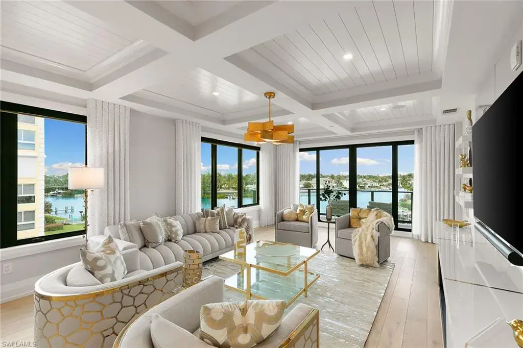 Step into a world of elegance and sophistication in this extraordinary waterfront penthouse. Decorated by Wilfredo Emanuel Designs, this condominium showcases an open floor plan, creating a seamless flow throughout. The gourmet kitchen features an oversized island, luxury appliances, custom cabinetry and lighting; it’s a culinary haven. A well-appointed wet bar and dining area enhance the entertaining experience, and the great room is a versatile space ideal for relaxation, capturing both water and city vistas, leading onto the open lanai with Hurricane Harbor water views. The primary suite is a private retreat, complete with a luxury bath and generous custom walk-in closet, plus two additional en-suite guest bedrooms, powder room and laundry. This property, completed in late 2023, boasts its own boat slip on-premise, providing quick and easy access to the Gulf. Enjoy leisure activities like a waterfront putting green, relax by the resort pool or enjoy the rooftop lounge to take in sunsets. The beach, conveniently across the street, adds another layer of leisure. Located minutes to 5th Avenue South to enjoy fine dining and entertainment and walking distance to the fabulous upcoming Four Seasons Resort. Boat Slip # 9 included with purchase.