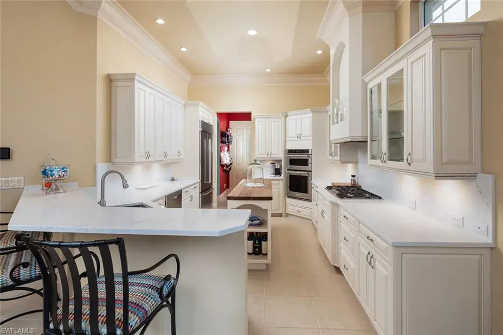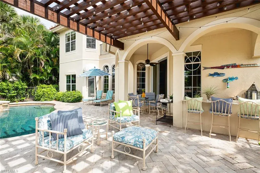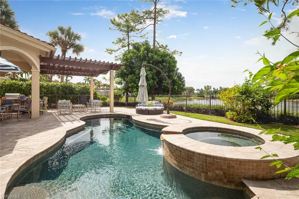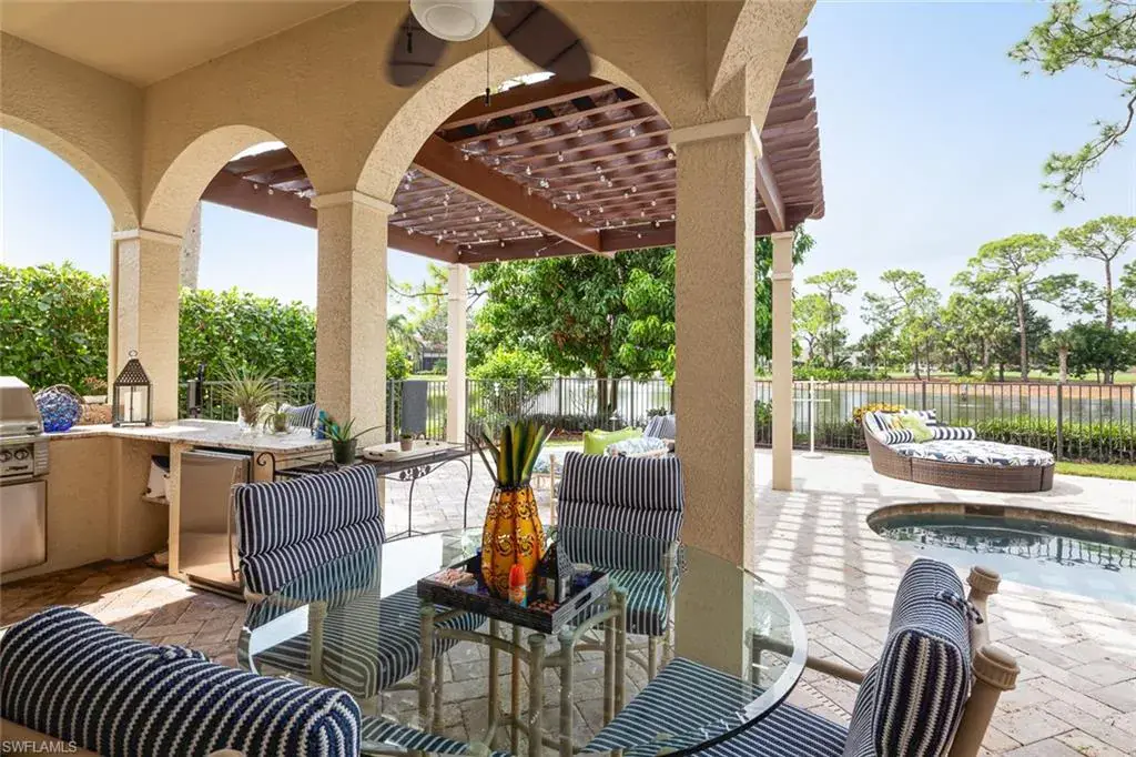 Indulge in the ultimate luxury living experience with this exceptional Grey Oaks residence, hosting serene lake and golf course views from a fantastic outdoor living area. The extraordinary home offers many desirable features, including a comfortable family room, a formal living room with a linear fireplace, an updated kitchen with quartz counters, a gas range, a custom island, and a study and formal dining room. The primary suite has two walk-in closets, an expansive bath, two vanities, and a soaking tub. You will find a loft, a covered balcony, and two additional en-suites upstairs. Outdoors, the extended lanai presents a private oasis with a resort-like ambiance, outdoor kitchen, pergola, and a sparkling pool and spa. Perfect for entertaining family and friends, this residence provides endless opportunities for relaxation and enjoyment. Soak in breathtaking sunsets and listen to the serene sounds of nature after a day of pickleball or golfing. Indulge in the Naples’ lifestyle at its finest in sought-after Grey Oaks, with world-renowned shopping, dining, and white sand beaches just minutes away.