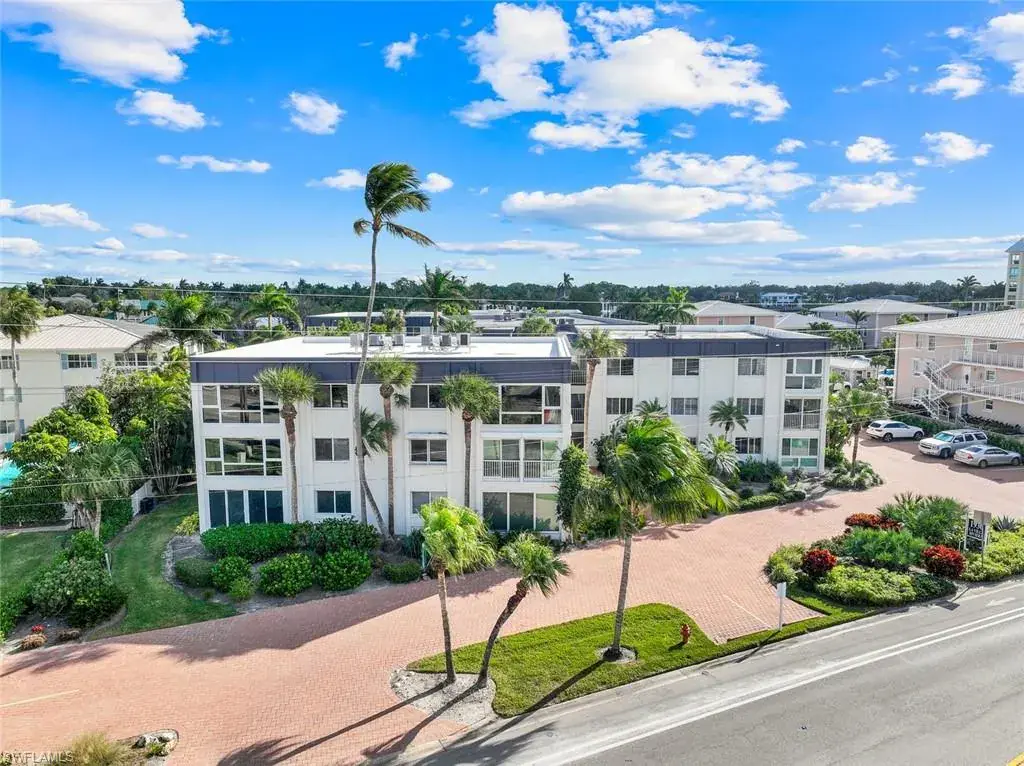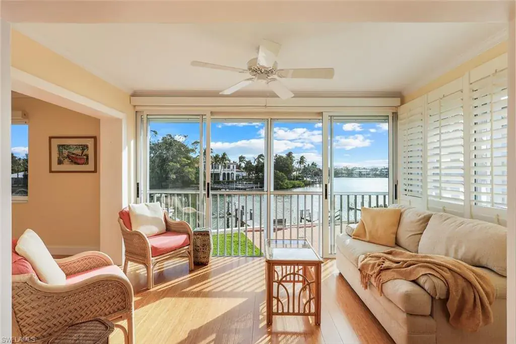 MAJOR PRICE IMPROVEMENT…BEAUTIFUL BAY VIEW from 2nd floor unit closest to the BAY in sought after La Villa Riviera. ACROSS THE STREET FROM THE BEACH with beach access walkway. TURNKEY, RENOVATED, FURNISHED 2 bedroom and 2 bathroom unit with an enclosed lanai that creates more open living space and an abundance of natural light. New BAMBOO flooring in living area, carpet in bedrooms, and plantation shutters throughout. The AC was replaced in January 2024 and the water heater in 2023. Amenities include a spacious central lanai surrounded by lush landscaping overlooking the beautiful heated pool, lounge deck and grilling area. The lanai, where frequent social events are held, is adjacent to newly renovated meeting room, kitchen and library area, sizeable storage closet, a workroom, and laundry. ALL of this, just minutes to 5th Ave South’s fine dining and shopping.All engineering studies for building are complete and any change reflected in reserves.