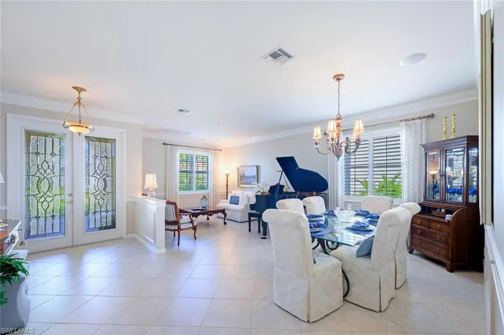 ATTENTION GOLFERS THIS IS A “HOLE IN ONE “OPPORTUNITY to live in gated Golf Course community just 4 miles to beaches and downtown Naples.  Monte Carlo floor plan has 4 bedrooms, 3 fulls baths, laundry room, 2- car garage and screened-in Lanai with heated lap pool (9′ X 30′) a soothing spill over waterfall.The owner has moved out and now rooms and lanai are empty.  FULL GOLF MEMBERSHIP AND LOWEST FEES IN NAPLES! PRIVATE SETTING OVERLOOKING HOLE #2 with endless view of lush golf course. Several updates include new roof 2018, high impact windows on front, power shutters on back, and sliding shutter on side plus solar panels. A sun filled home with lots of windows, sliding glass doors and plantation shutters. The white cabinets are perfect contrast with the highest grade granite counter tops (grey) beveled edges. A double sized pantry closet with several pull out shelves and deep storage cabinets.Previously a builder owned this residence and added wainscoting, raised paneling and crown molding through out.  Primary suite first floor includes updated walk-in shower, two vanities with sinks, soaking tub and water closet. Large walk-in closet plus another double door closet. Office or 4th bedroom on first floor is set up as office with full bath that also has door to lanai as a pool bath. Second floor boast two spacious bedrooms with walk-in closets, 1 full bath, and linen closet. Glen Eagle Golf & Country Club resort country club with pro golf shop, women’s and men golfing leagues, community heated swimming pool, clay tennis courts with lights for evening games, fitness center with yoga studio, the Divot restaurant, bocce ball. Two gates for easy access Main gate off Davis Blvd, and back gate off Radio. 4 miles to downtown 5 TH Ave. S. shopping district, marinas, beaches, theaters and parks.