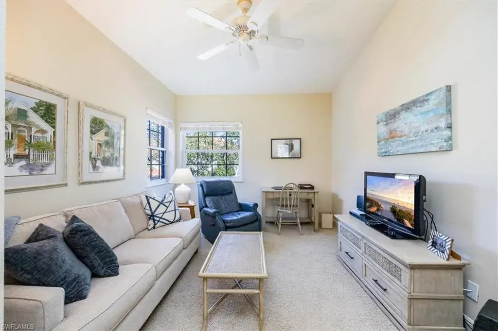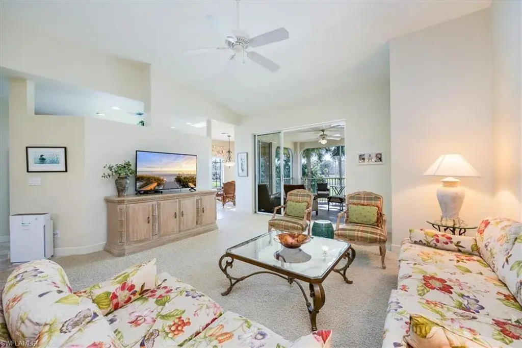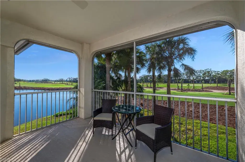 It’s all about the view and a great location! This fabulous, spacious, 2nd floor condo with panoramic lake and golf course views and close proximity to Vineyards Country Club’s award winning Wellness and Fitness Center makes for a perfect seasonal or year round retreat! With no buildings next to you there are uninterrupted views down the 10th and 11th fairways and over a glistening lake. The property comes turnkey furnished so you can be ready for Season. The Kitchen has granite counter tops, a NEW DISHWASHER AND RANGE and views from the sink and eat in table over the lake and fairways. The bright and sunny master bedroom has a roomy walk in closet, dual sinks in the bathroom, large walk in shower and separate tub. Two guest bedrooms share a shower room and there is a powder room for visitors. Full laundry room with sink and plenty of cabinets. A comfortable den with newer sleeper sofa finishes off the living area of this lovely home. There is a BRAND NEW A/C and the roof is approx. 3 years old. Huge closet downstairs near the two car garage and there is room to install an elevator. Membership to Vineyards Country Club is optional with two levels available. The location within Naples is amazing with easy access to the beaches, Artis, Mercato, 5th Ave and all that Southwest Florida has to offer!
